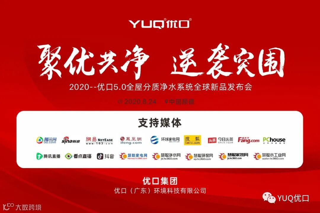 在10+全球主流媒体和70000+在线观众的共同见证下,优口净水全球新品发布会于2020年8月24日在优口集团总部胜利召开。优口集团总裁黄庆羽先生在致辞中表示,优口净水从进入国内创建之初就定位只做高端市场,产品必须做到三个维度:高端、实用、耐用;产品线锁定:家用、商用、大型工业用;我们认为三点才能成一个面,三架马车并驾齐驱才能行成优势互补,资源共用。事实证明我们的定位和方向是正确的。当然这阶段性的成绩也离不开全国1000+合作商的信任和支持,离不开各界朋友和友商的帮助。