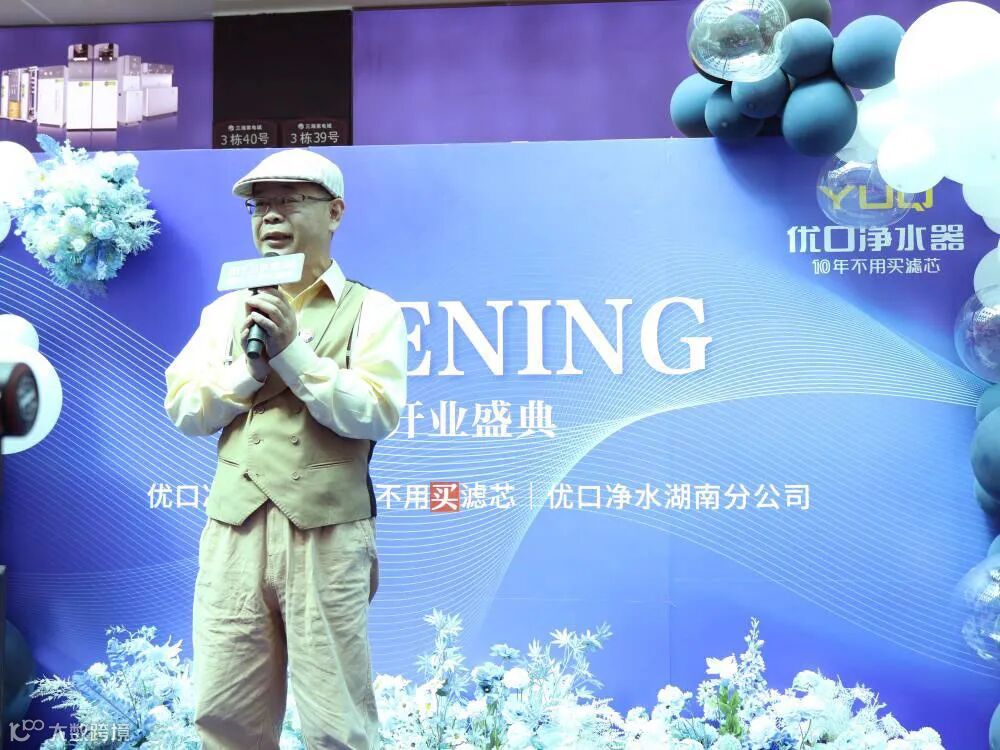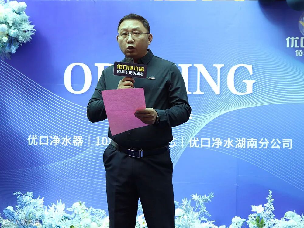 开业典礼上,优口净水湖南分公司总经理楚军上台致辞,表达了对各位嘉宾的诚挚的欢迎和感谢。