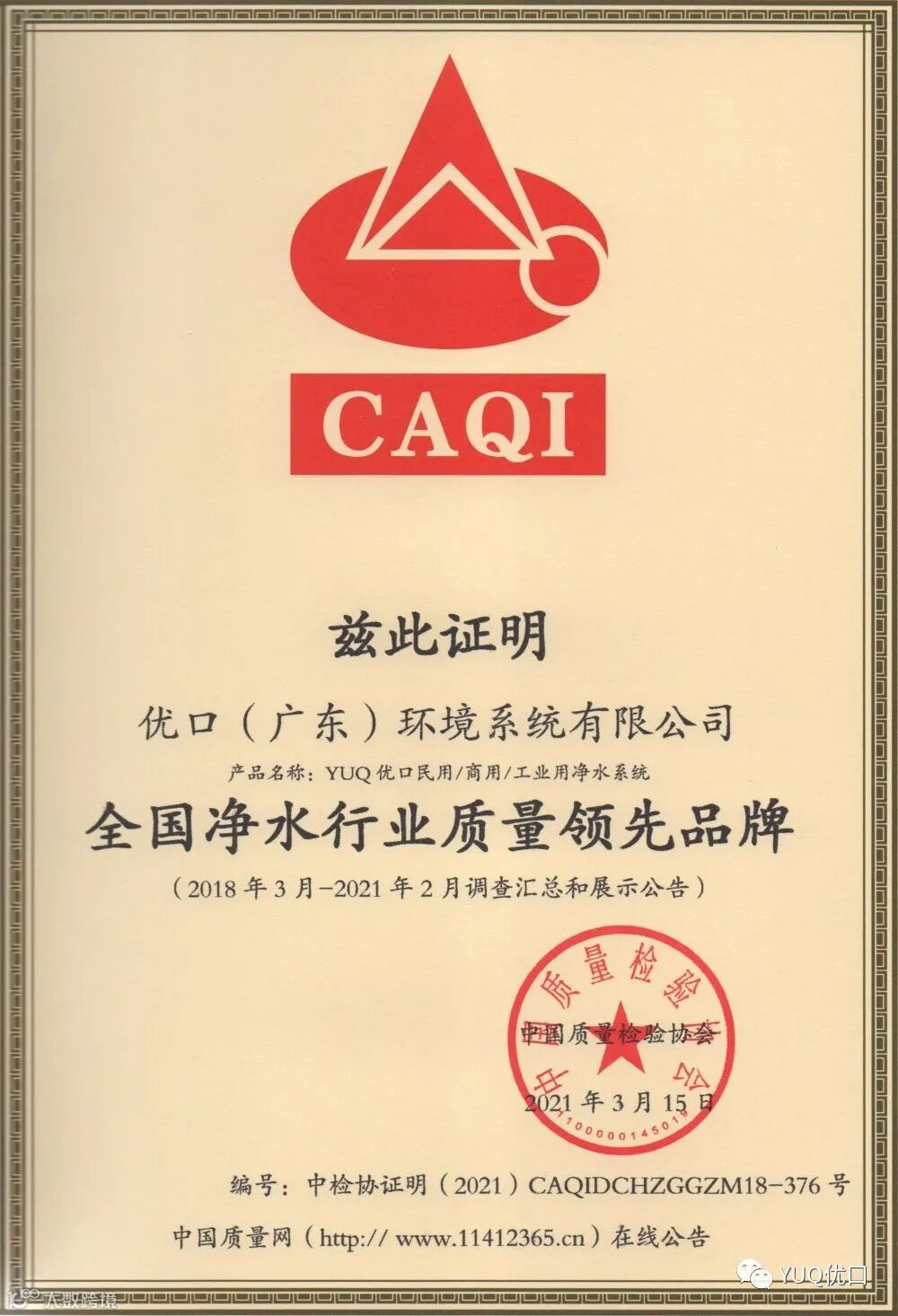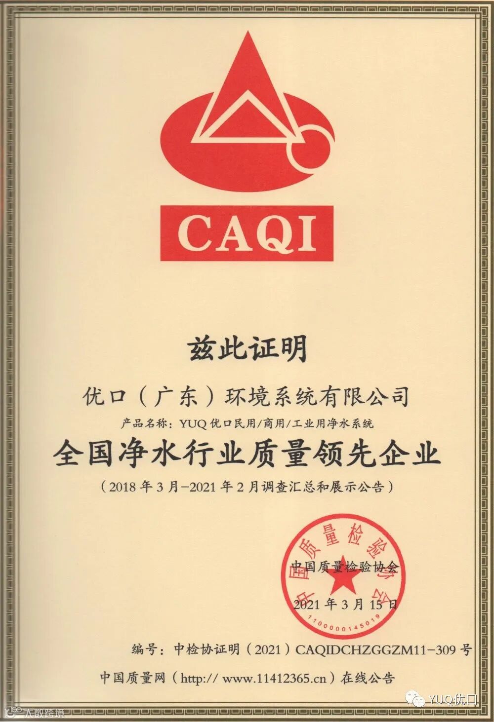 全国净水行业质量领先企业
