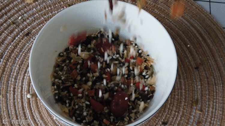 将所有食材清洗后,用水浸泡一夜,煮粥水尤为重要,建议使用矿物质水。