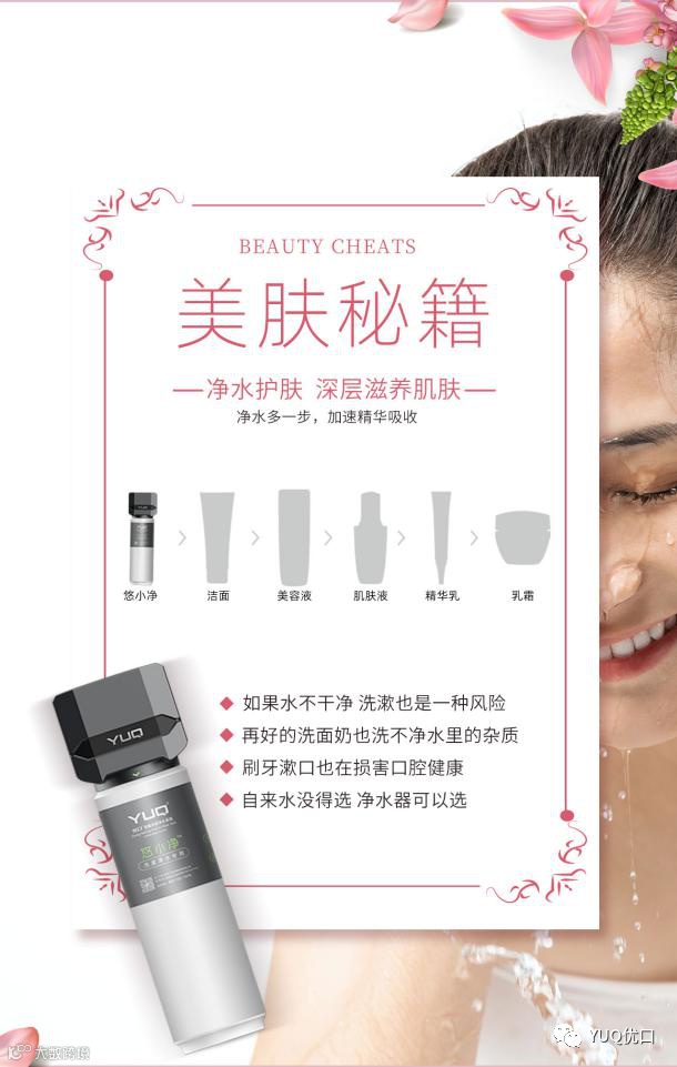 我们常说,护肤的第一步是洗脸,肌肤是脆弱的,会受到各种各样因素的影响,因此护肤需要足够的细心与耐心。软水洗脸,正确打开护肤第一步,清洁更彻底,后续补水效果更好,肌肤屏障更加健康、强韧。通过优口悠小净,可以有效过滤水中泥沙、铁锈、红虫、微生物等物质;吸附异色异味、水中余氯;除去水中钙镁离子,软化水质。软水洗脸,不易产生皂垢残留,保湿补水,改善肌肤屏障功能。洗脸用对水,护肤才有效。