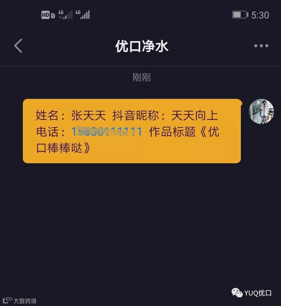(姓名+抖音昵称+电话+作品标题)以私信方式发给“优口净水”官方抖音号完成报名。