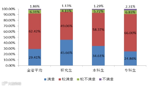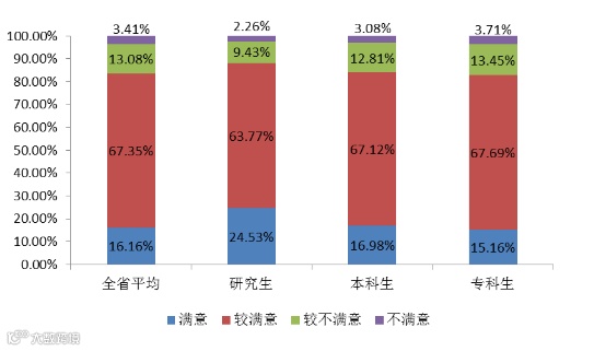 从以上三个满意度情况可以看出,我省毕业生对教学实践环节的满意度相对较低,对教学质量普遍感到较为满意。