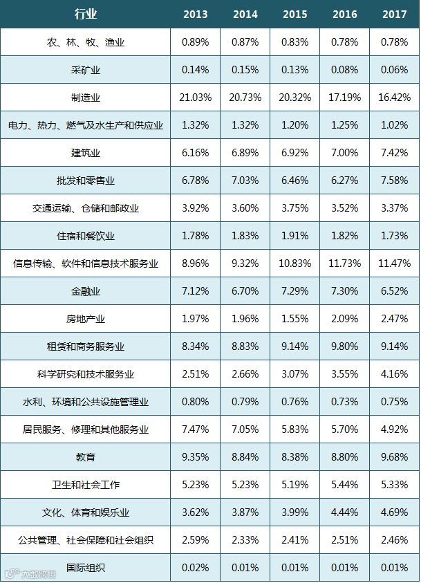 近五年来广东省高校毕业生行业流向比例表