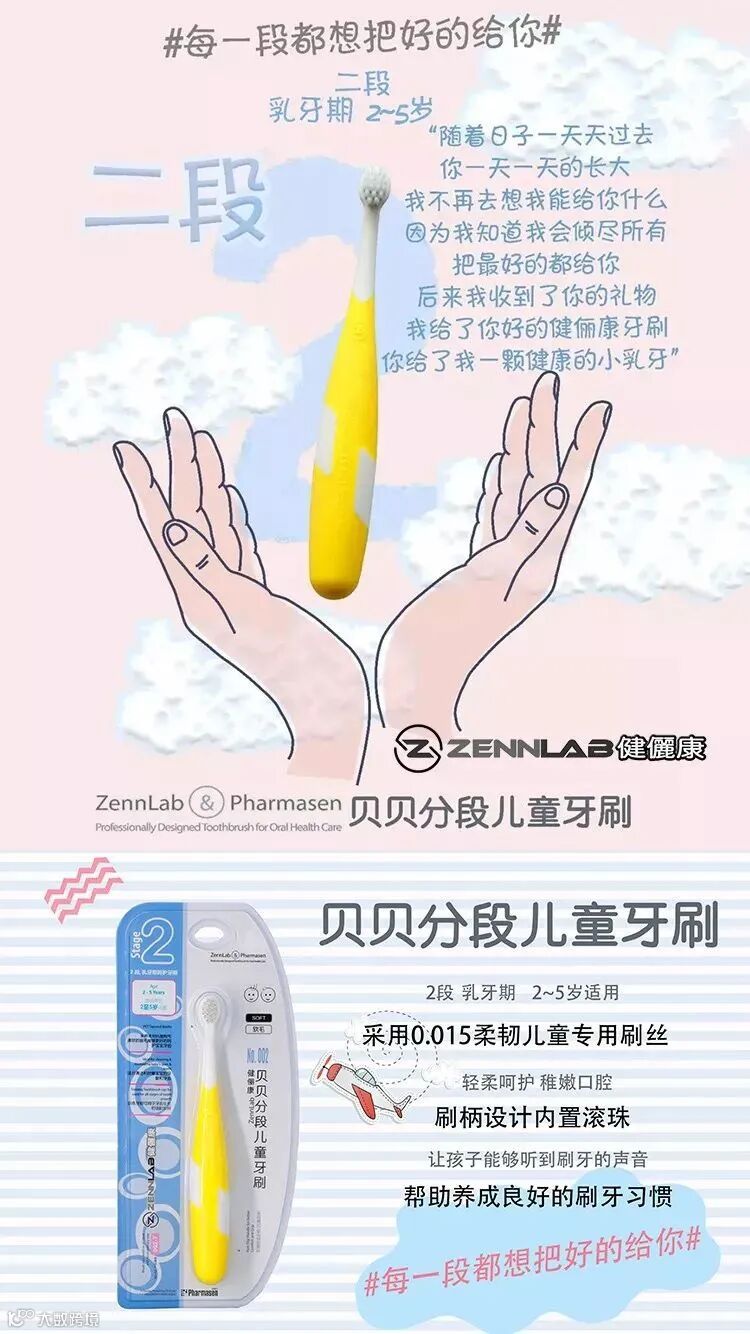 产品品名:ZennLab健儷康贝贝分段儿童牙刷-2段;