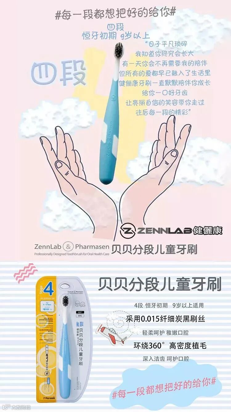 产品品名:ZennLab健儷康贝贝分段儿童牙刷-4段;