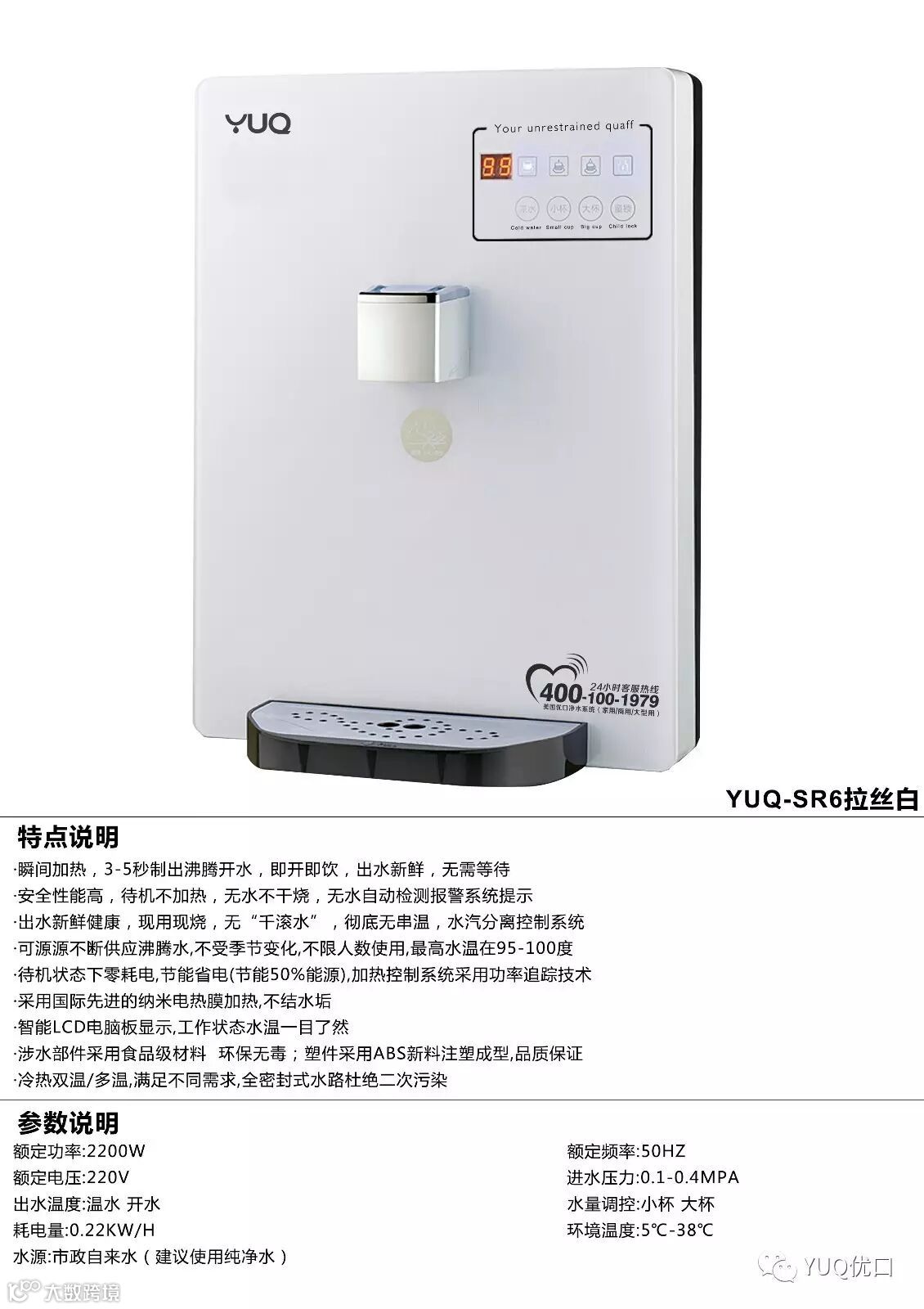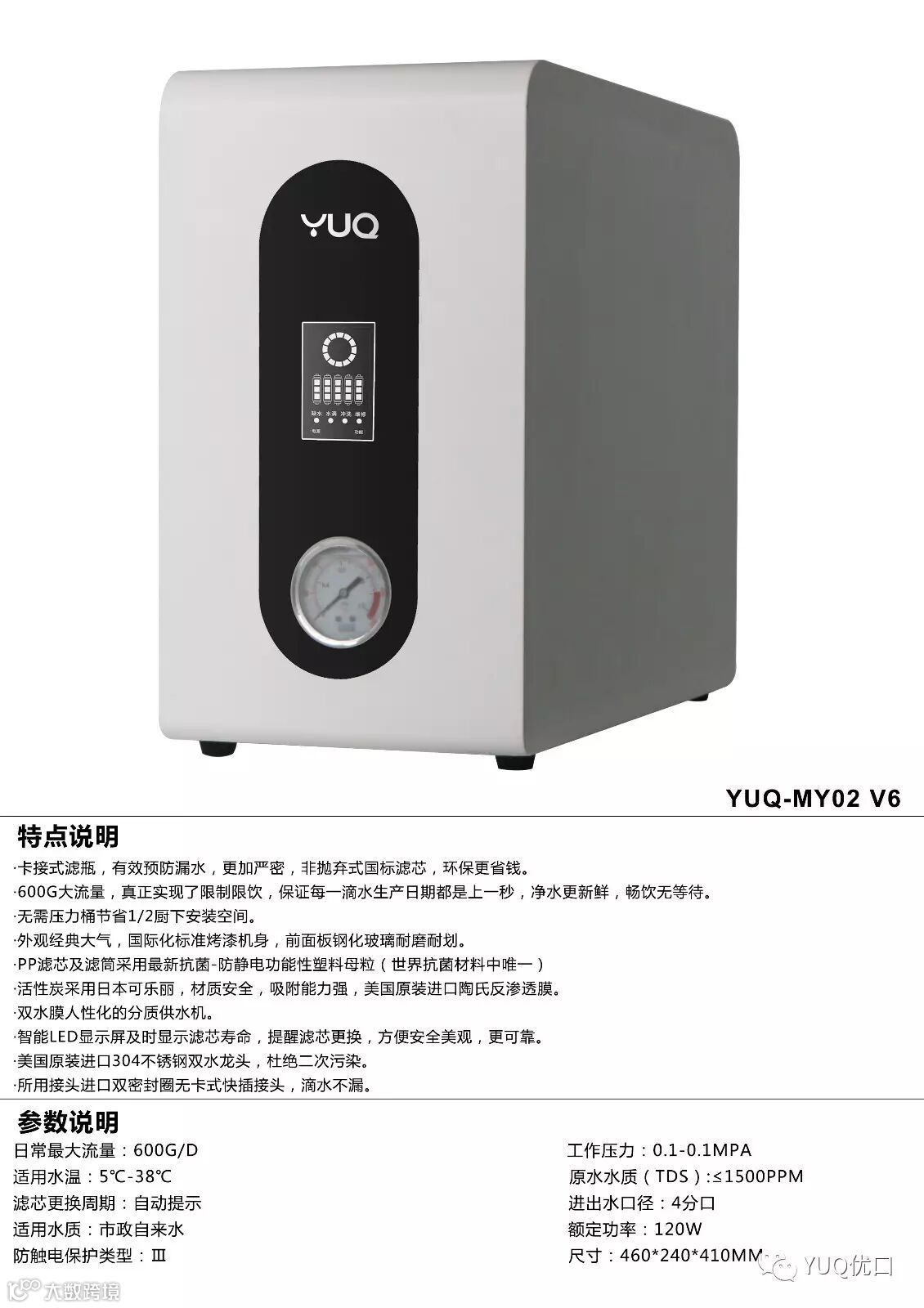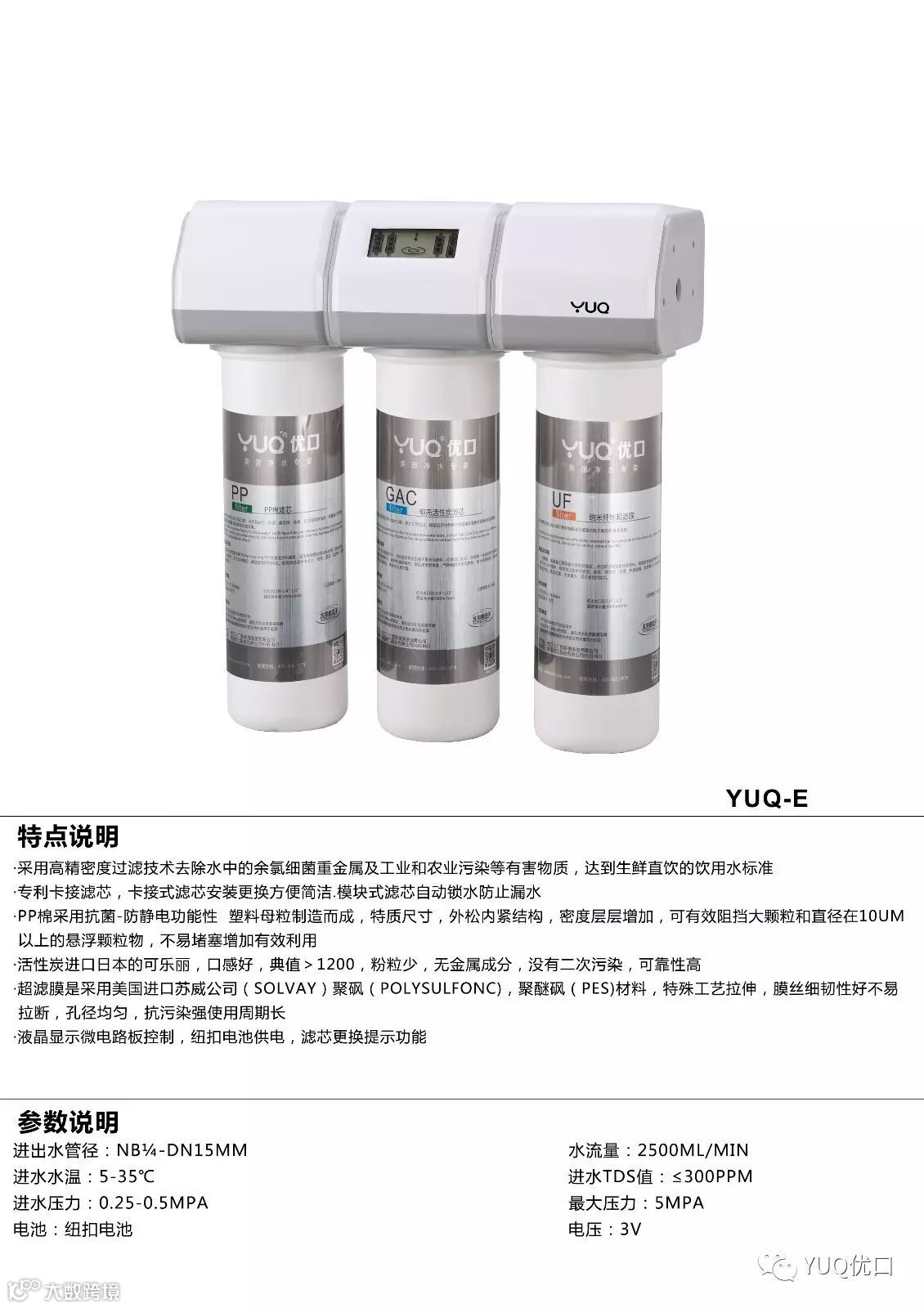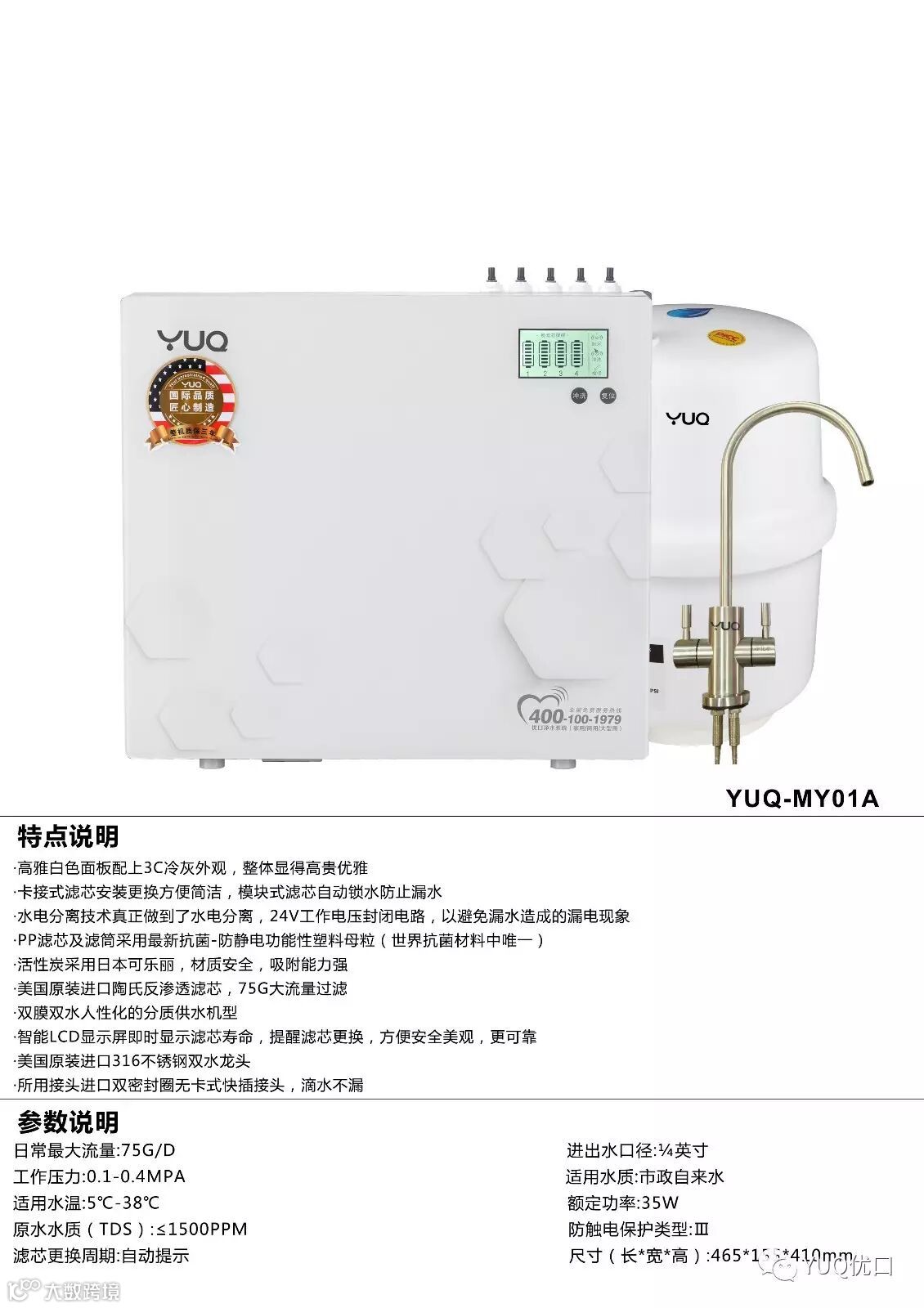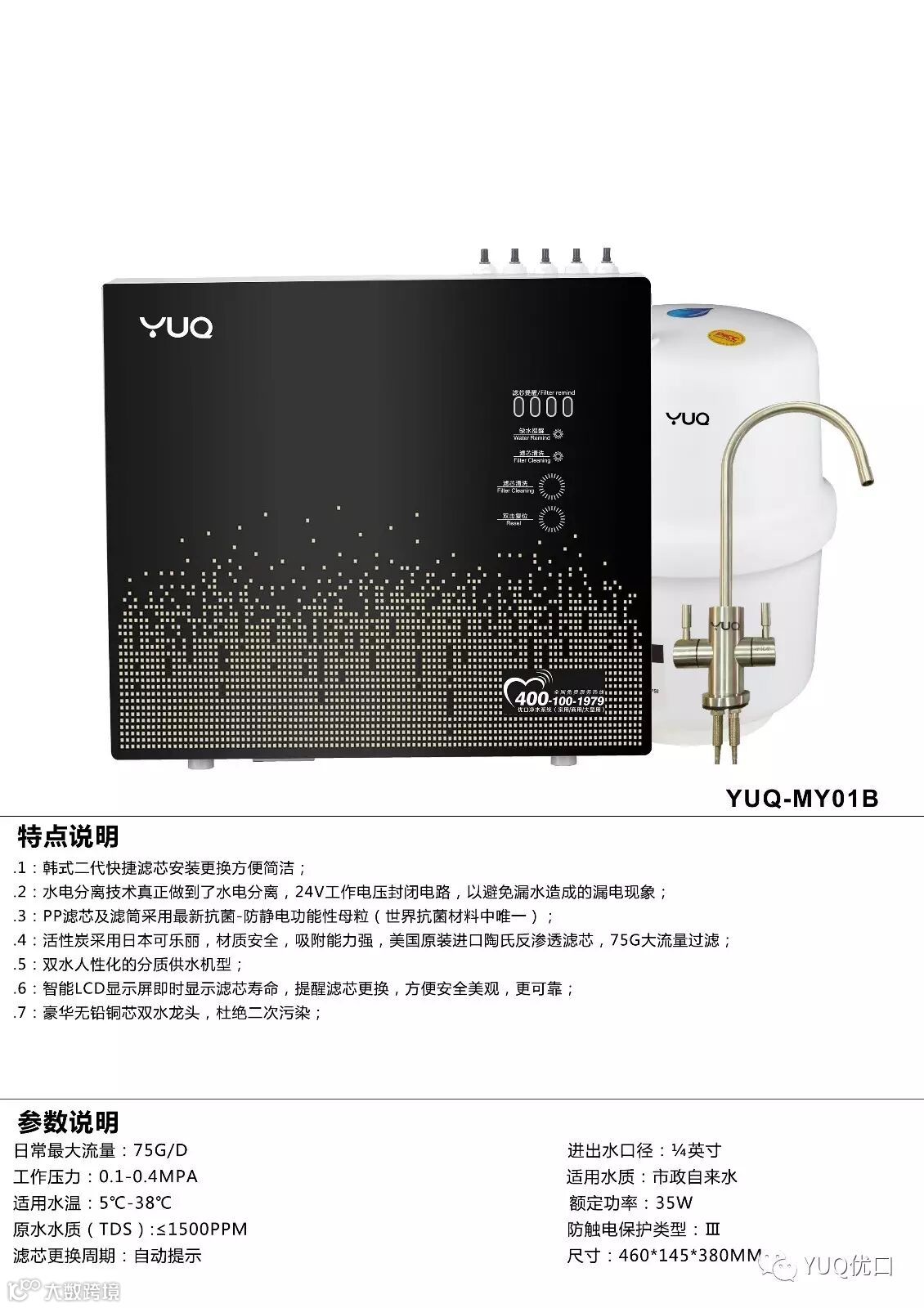 公司本着为中国千万家庭带来世界领先的水处理技术与产品为己任,让更多的人用上健康、环保的水处理产品,并能真正享受到规范的售后服务,不断为中国家庭居家用水提供更完善的解决方案。实现YUQ优口的品牌目标:Your unrestrainedquaff(你无忧无虑的畅饮)