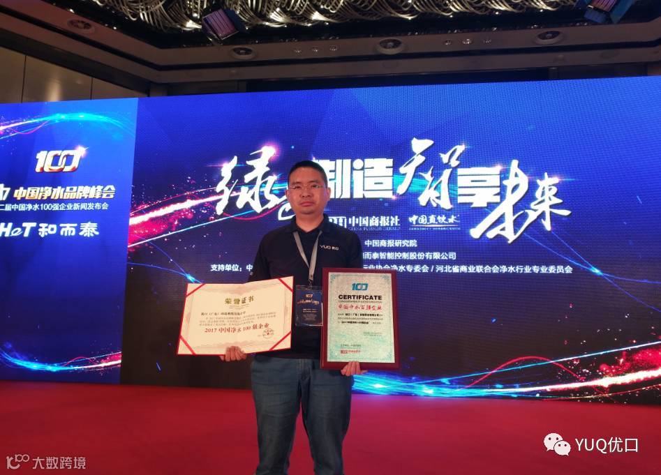 经过严格的调研考察,信息对比及主办方(中国商报社和中国直饮水)的评定:优口(广东)环境系统有限公司 在净水事业方面做出了突出贡献,在本次活动中被评选为:《2017中国净水100强企业》!