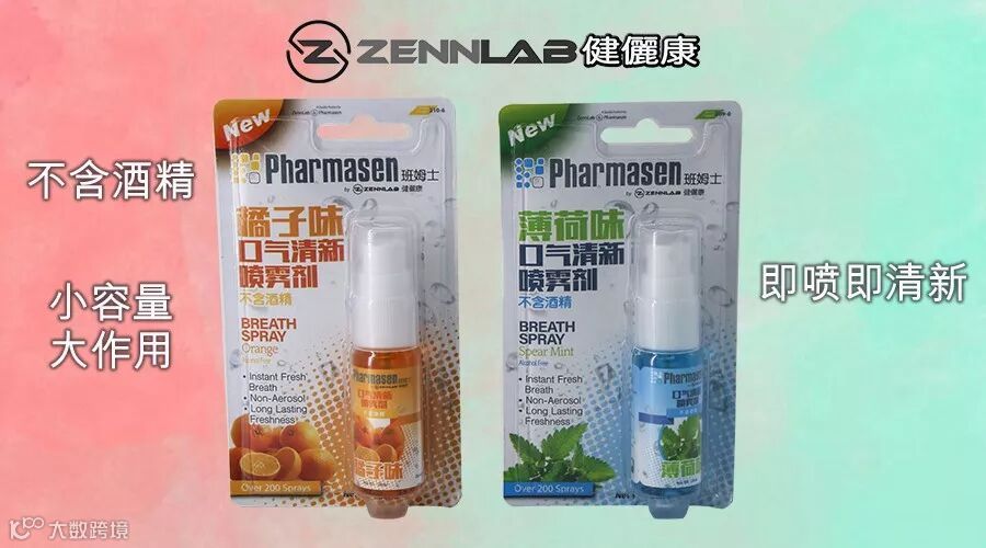 ZennLab健儷康口气清新喷雾剂入口有甜而不辣的薄荷味、淡雅清香的橘子味,轻轻一喷能持久清新口气!有了它,一整天都不怕口气尴尬啦!
