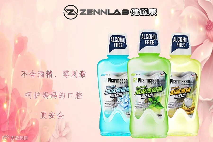 ZennLab健儷康漱口水:三种口味可选,原味薄荷、清凉薄荷、冰凉薄荷。每瓶500毫升,严格按照GMP标准生产,马来西亚原装进口,不含酒精、零刺激、效果显著,呵护口腔更安全可靠。