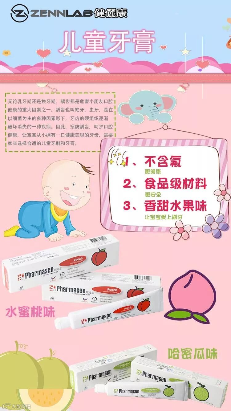 ZennLab健俪康儿童牙膏是专门针对儿童牙齿开发的产品,无氟可吞咽更安心。无论是儿童牙膏的气味,味道或者起泡度上都与成人牙膏有较大区别。