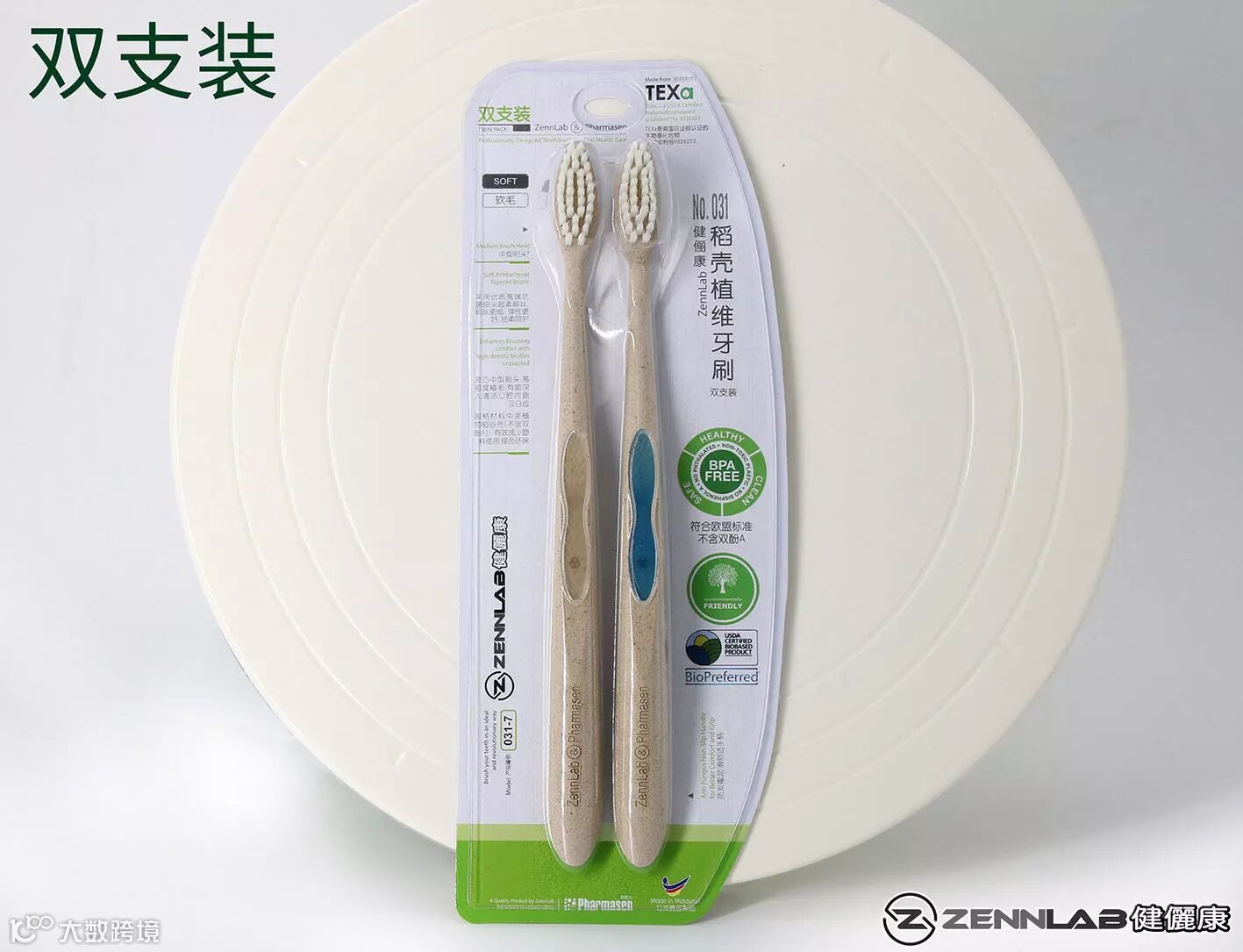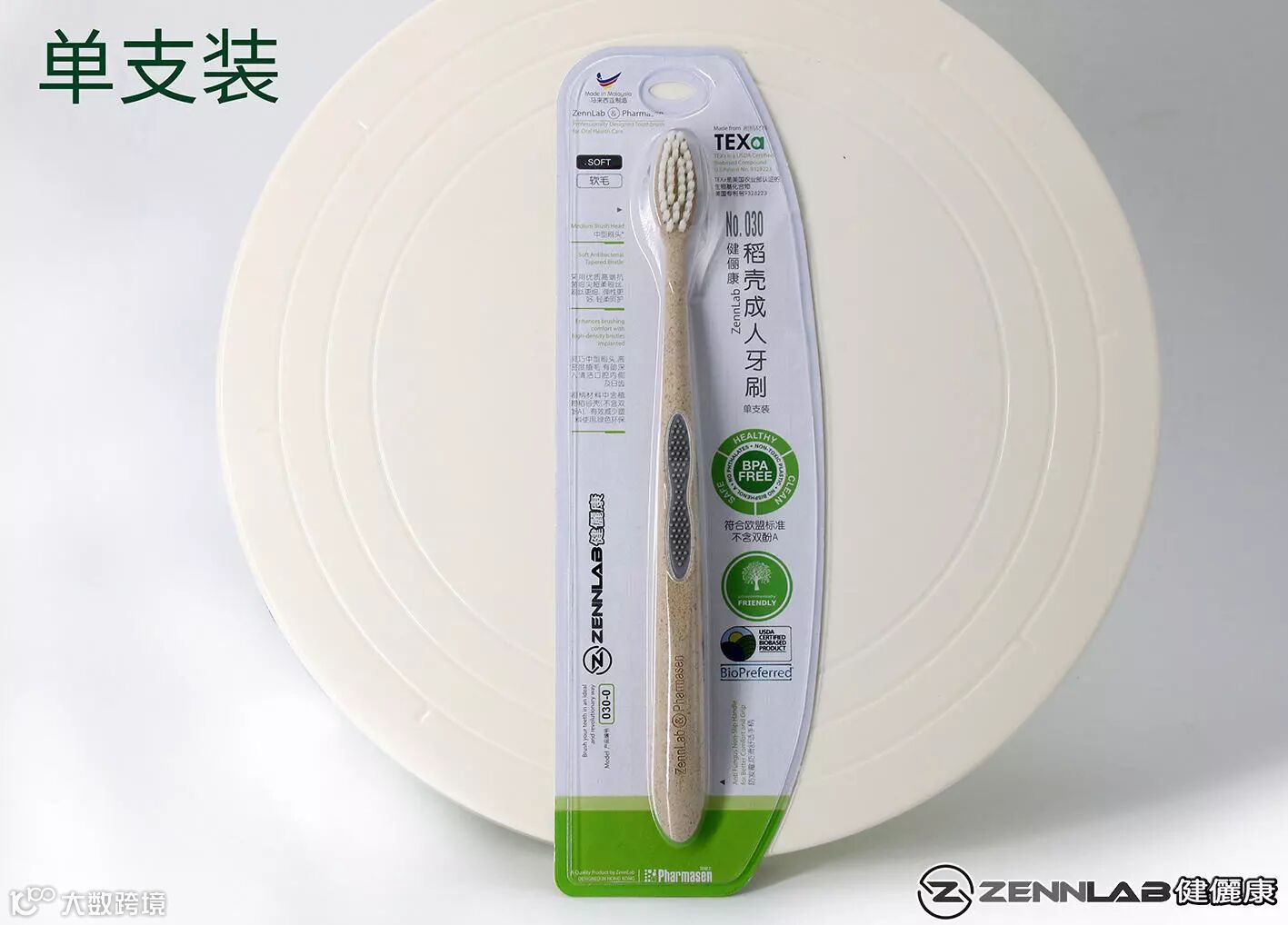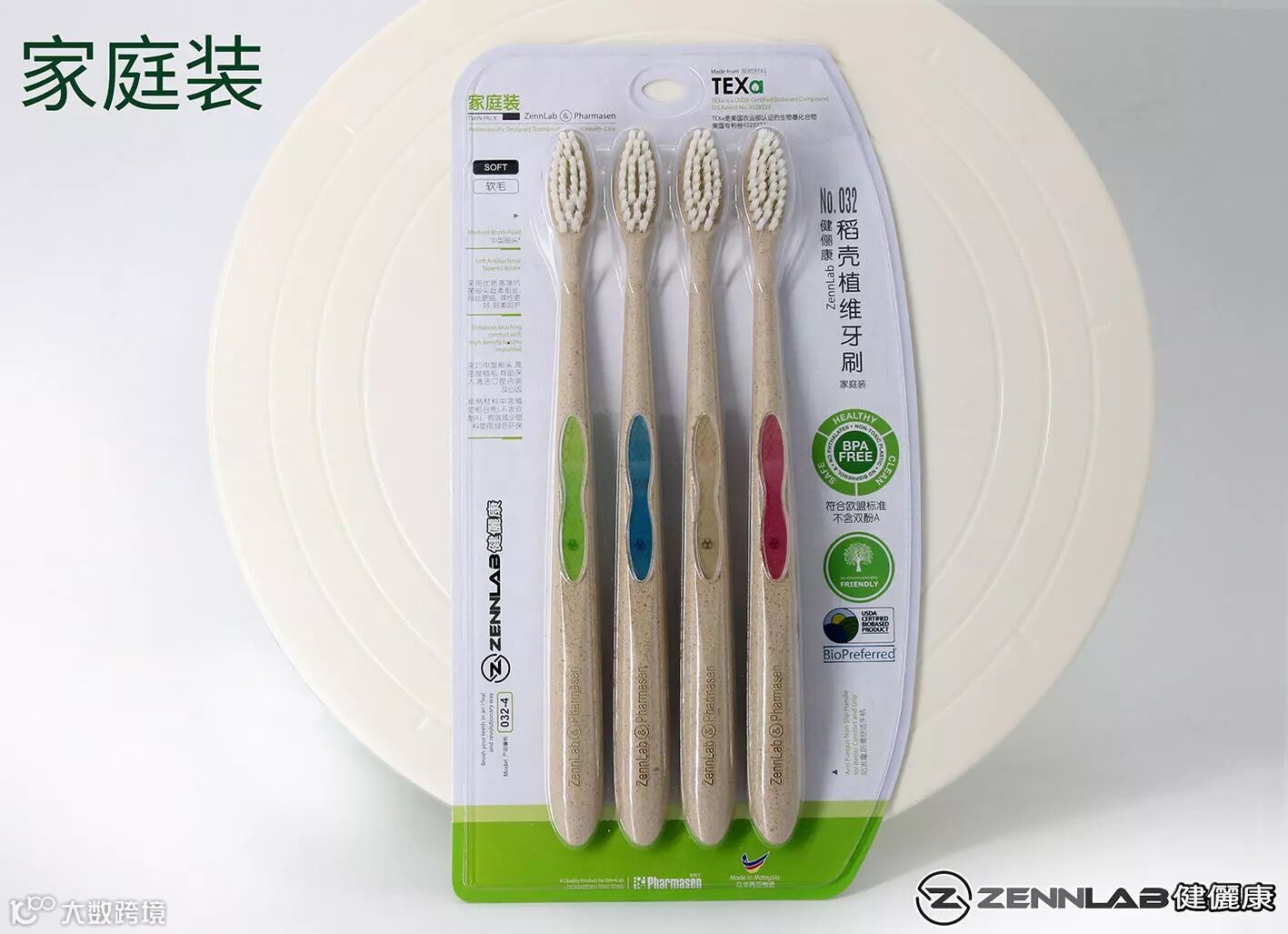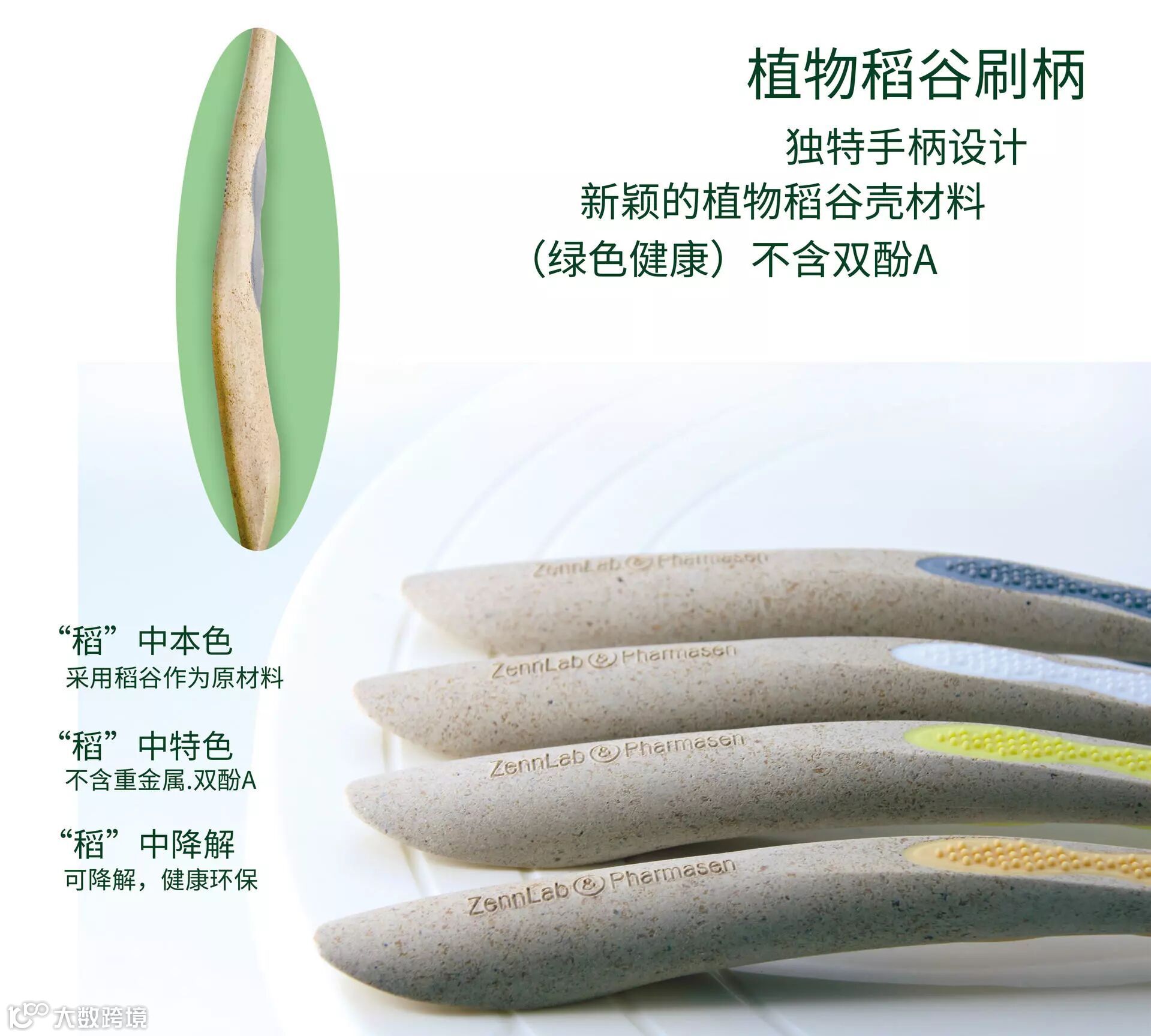 zennlab健俪康新型稻壳植维牙刷就采用了可再生的植物原料——稻谷壳。