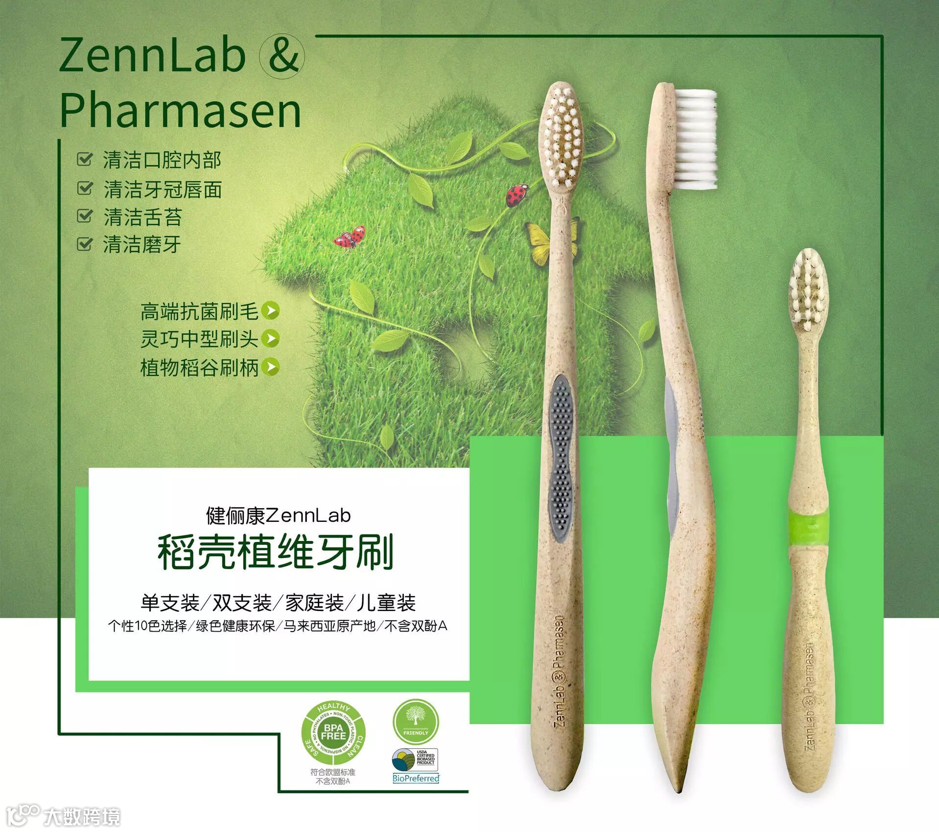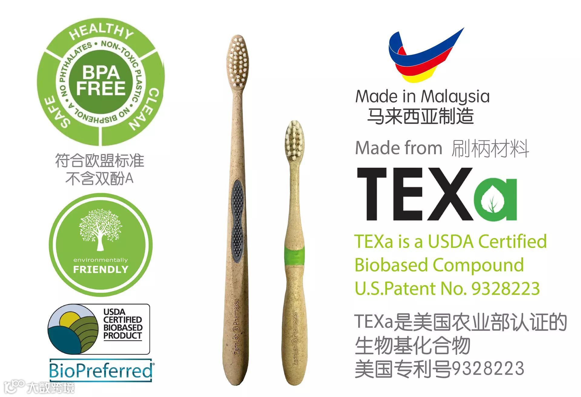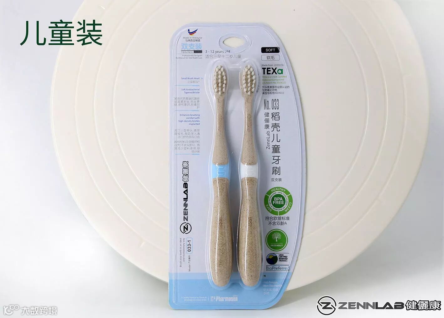 zennlab健俪康稻壳植维牙刷原产地来自马来西亚,符合欧盟的不含双酚A标准,孩子也能放心使用。