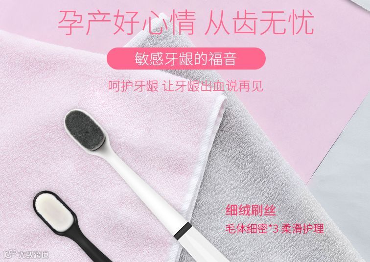 采用竖刷刷牙法,刷牙时要轻柔而彻底,不要用力过猛,太使劲会损害脆弱的牙龈,引起牙龈出血。点击蓝色字体可查看孕妇专用的绒毛牙刷,呵护牙龈。