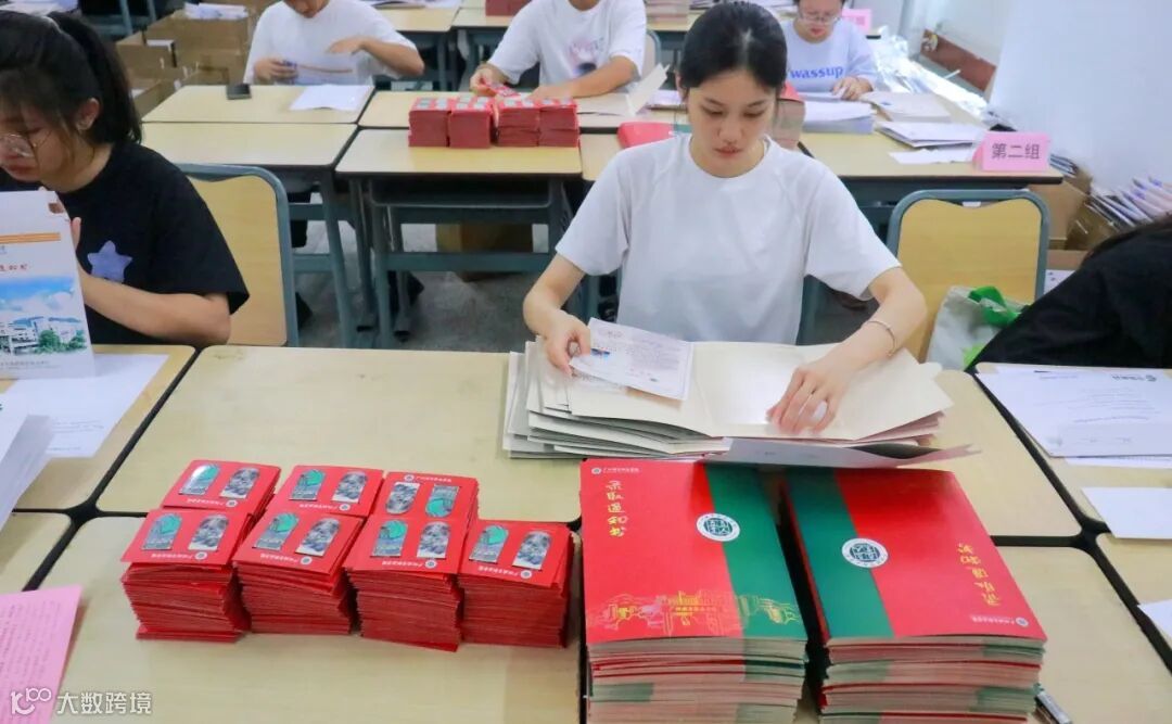 师兄师姐们小心翼翼地将录取通知书放置在信封里,再加入广城职院定制卡套和精美书签等小礼物,每样东西都仔细检查,传达着对新生由衷的祝福和欢迎!