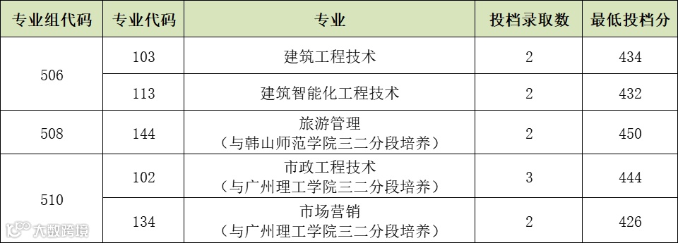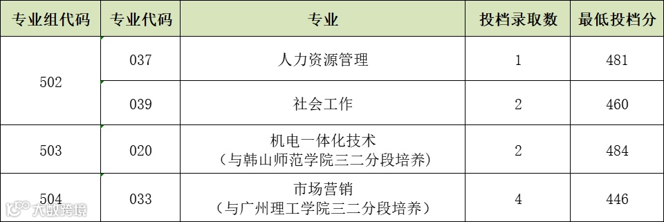 广东省夏季普通高考征集志愿录取已结束,我校普通类(历史)征集志愿投档最低分446分,投档9人;普通类(物理)征集志愿投档最低分426分,投档11人。具体投档录取情况如下: