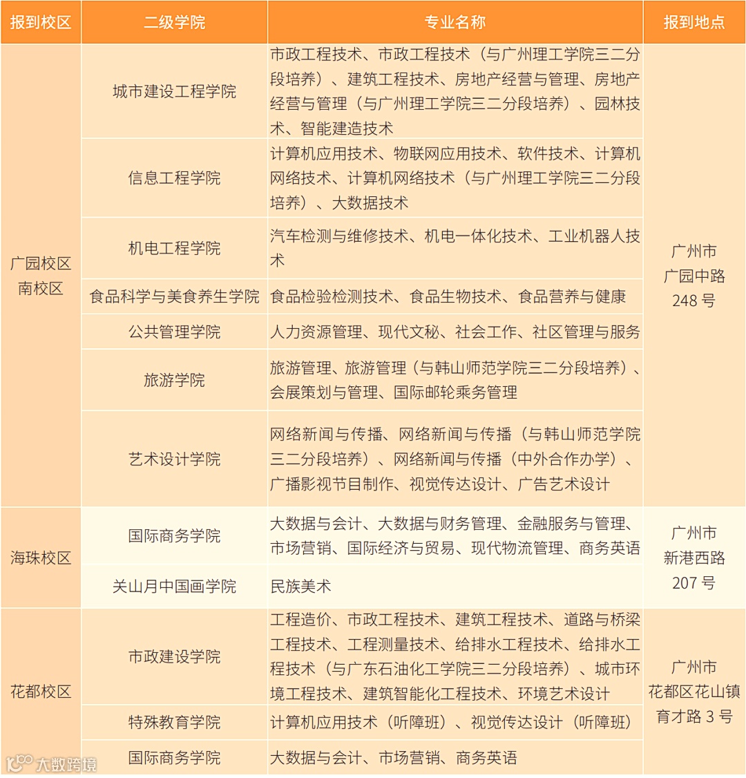 报到校区为广园 / 海珠(学制三年)