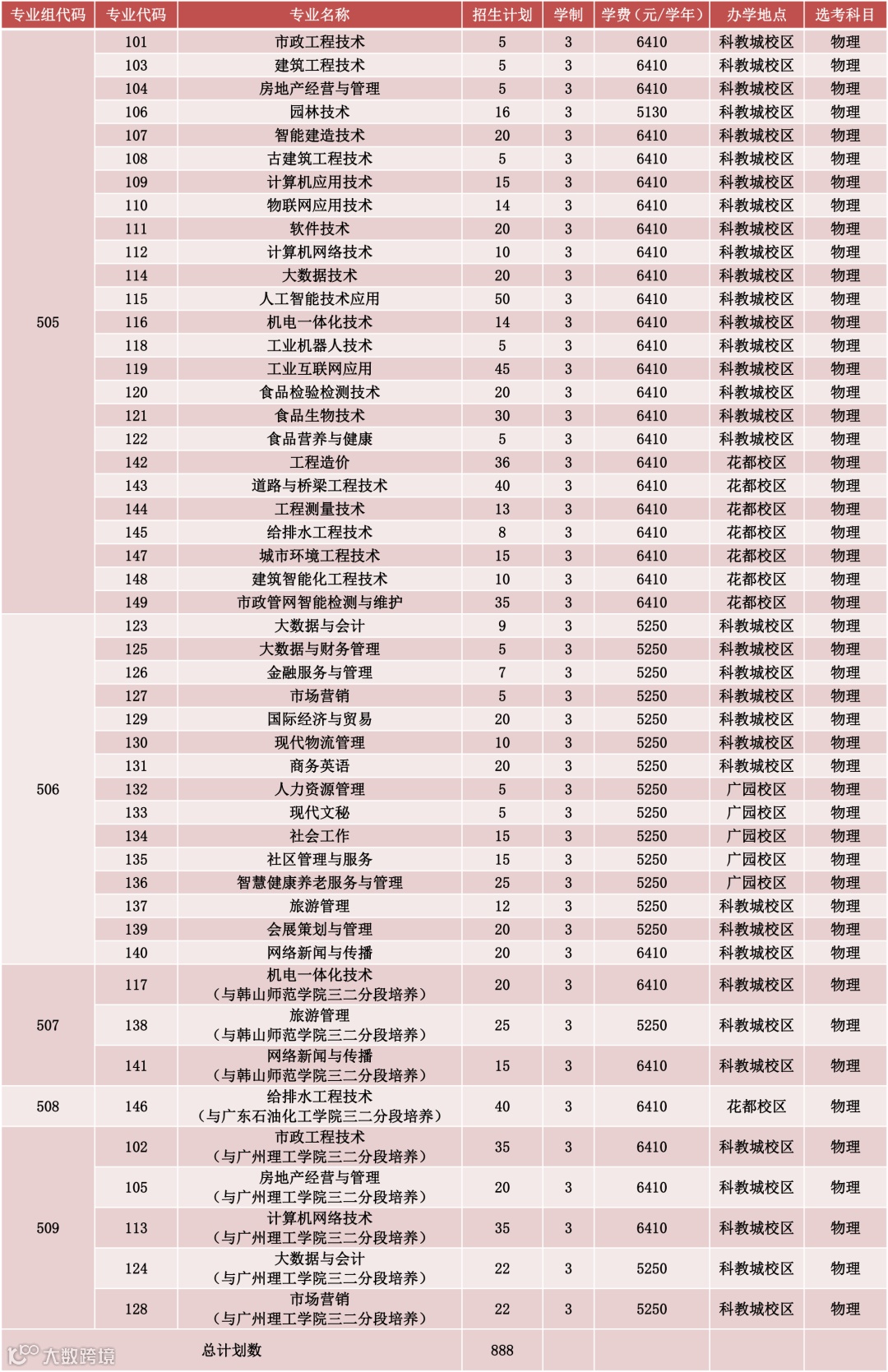 2023年广东省夏季高考招生计划表