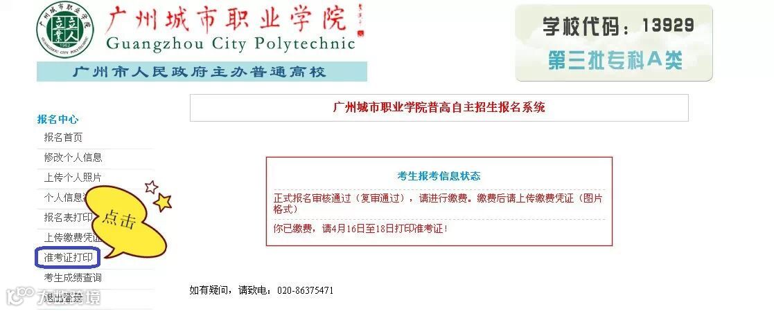 考生凭准考证号和考生密码登陆我院自主招生报名系统,点击“准考证打印”按钮进行打印。