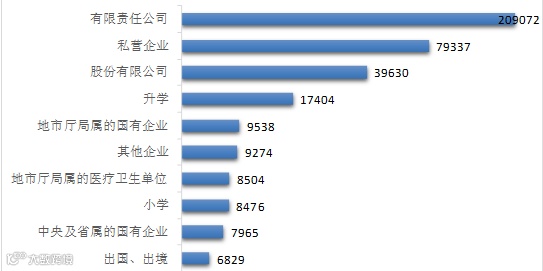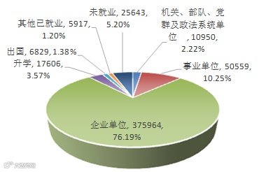 在就业单位类型小类,到有限责任公司和私营企业就业的毕业生分别有20.91万人和7.93万人,占毕业生的42.37%和16.08%。