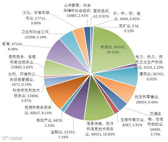 从行业大类看,制造业是毕业生就业最集中的行业,有9.01万人,占已就业毕业生数的20.32%,比2014年减少0.41个百分点;其次是信息传输、计算机服务和软件业,有4.80万人,占10.83%,比2014年增加1.51个百分点;第三是租赁和商务服务业,有4.05万人,占9.14%,比2014年增加0.32个百分点。