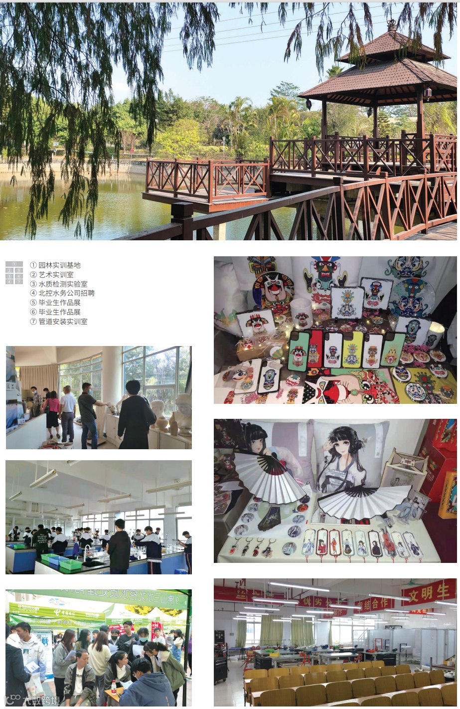 学院9个专业共配有土建类、园林类、生化类、建筑智能化类专业实验、实训室90多个。实验仪器设备价值达1500万元,实验室面积达到1.2万里平面米,可开出160个实验实训项目。建有校外园林实践基地,占地约55亩,可同时容纳200名学生住宿、实习。基地内有陶艺馆、温室等室内教学实训场所,内有拉胚机、电窑、灌溉、降温、加温等实训设备;设有沙池、园林草坪等园林景观实习场地,配有剪草机、绿篱机等草坪修剪机械,用于园林工程、植物栽培养护、园林小品施工等实训。2021年园林实践基地成功申报为广州市中小学劳动教育基地。