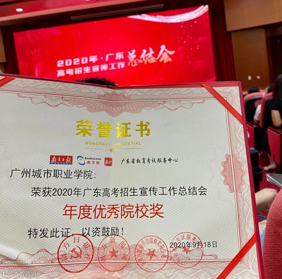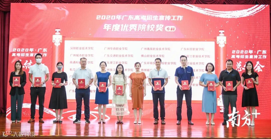 9月18日,由广东省教育考试服务中心、南方日报、南方新闻网、南方+客户端联合主办的2020年广东高考招生宣传工作总结会在南方报业传媒集团举行,南方报业传媒集团、广东省教育考试院、广东省教育考试服务中心等有关领导莅临会议现场。会议对本年度在夏季(春季)高考招生宣传工作中表现优异的高校和个人进行集中表彰,我院荣获“2020年广东高考招生宣传工作年度优秀院校奖(专科)”。