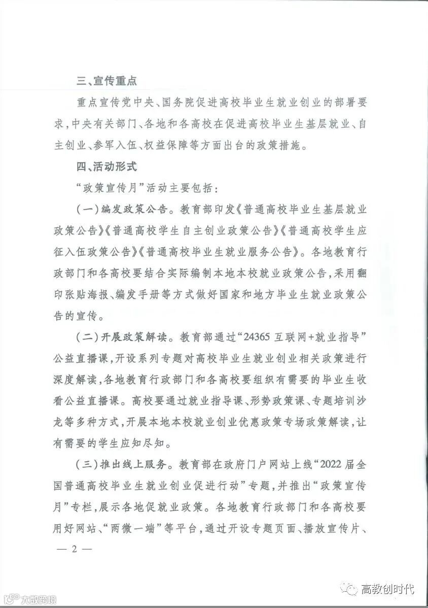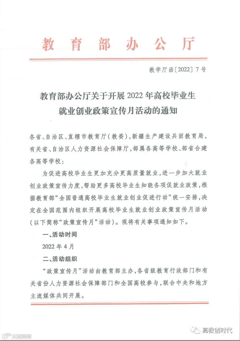 日前,教育部办公厅印发《关于开展2022年高校毕业生就业创业政策宣传月活动的通知》,于2022年4月,在全国范围内组织开展高校毕业生就业创业政策宣传月活动(以下简称“政策宣传月”活动),将编发系列政策公告,进一步加大就业创业政策宣传力度,帮助更多高校毕业生知晓各项促就业政策,促进高校毕业生更加充分更高质量就业。