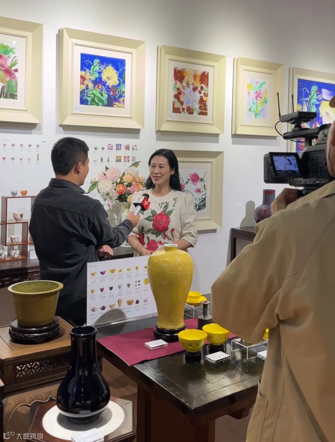 冯玮瑜老师说:“古物创新是连接过去与未来,让传统与现代交融共生。”值得一提的是,冯玮瑜老师不但有理论的高度,而且还身体力行,创作了“瑜窑”、“繁花”、“星垂大漠”、“现代纪”等多个系列作品。在此次展览中,她几个系列的作品惊艳亮相。在冯老师的巧妙设计下,一件件古物在创新作品的映照下,重新赋与现代色彩,焕发出了新的生命力,展现魅力的同时又兼顾了实用功能,让观众们赞叹不已,成为广州设计周众多活动中的一大亮点。连广东电视台、广州电视台也专门来采访冯玮瑜老师。冯玮瑜老师说:“‘瑜窑’系列是从我收藏的御窑器物入手,也有一定的创新;而‘繁花’等系列则是通过创新的设计,实行古今对话。”
