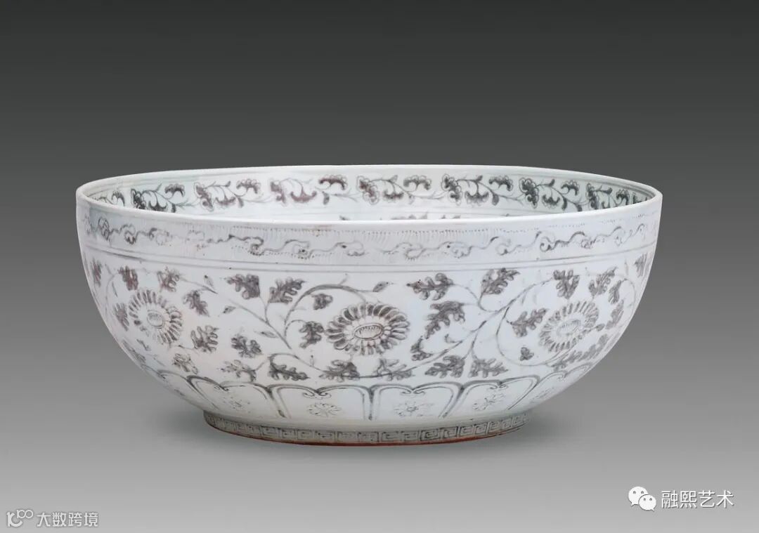 明洪武 釉里红如意云形缠枝牡丹菊纹大碗