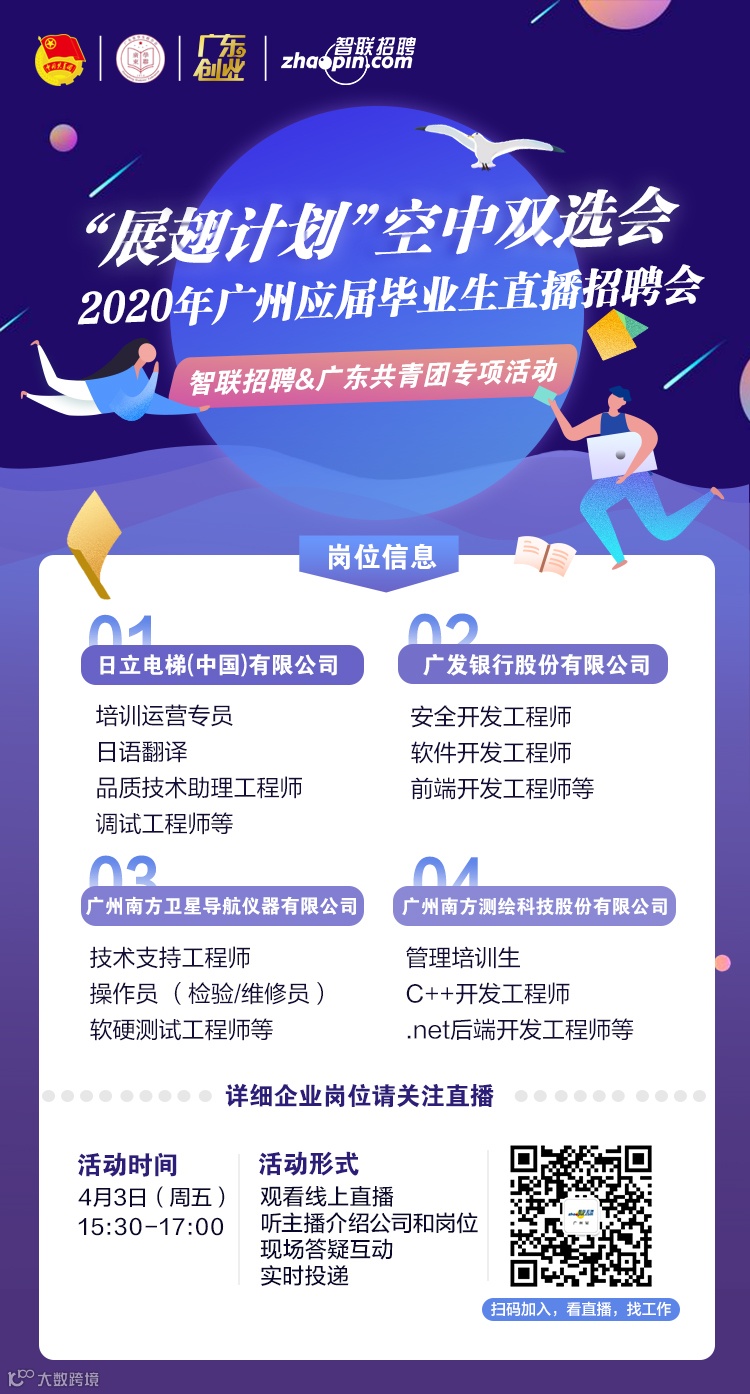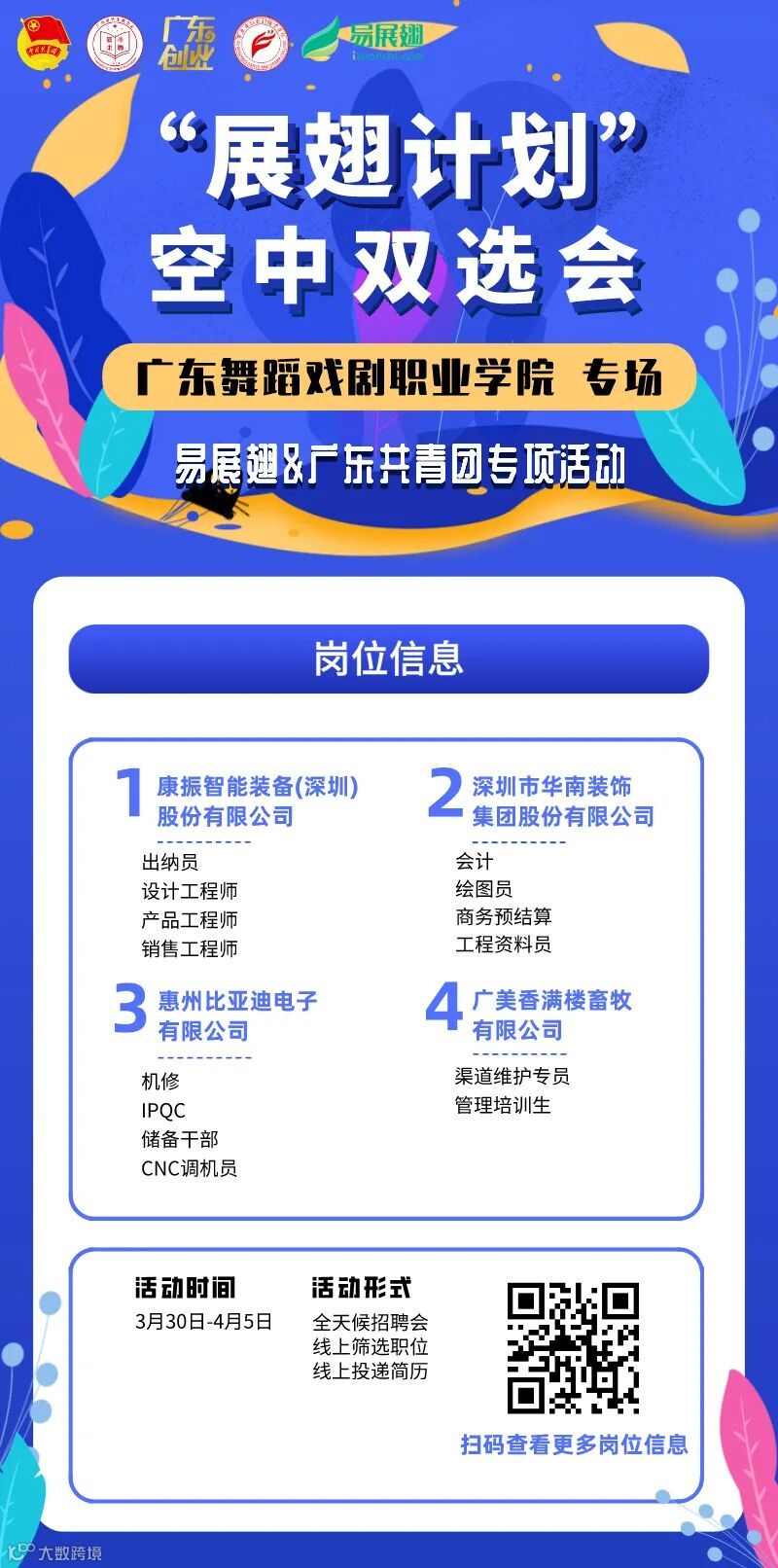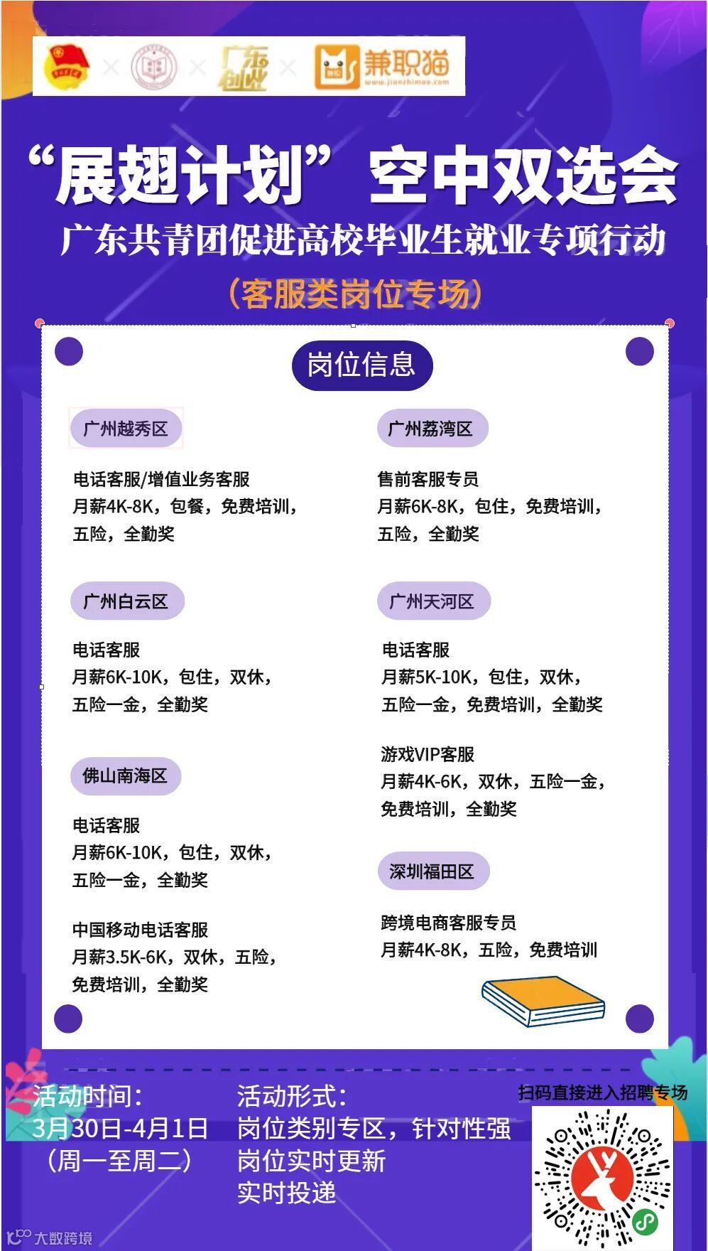 为贯彻落实国务院《关于应对新冠肺炎疫情影响强化稳就业举措的实施意见》和教育部《关于应对新冠肺炎疫情做好2020届普通高校毕业生就业创业工作的通知》,协助做好疫情防控期间广东省2020届普通高校毕业生及青年就业服务工作,团省委、省学联决定开展“展翅计划”广东共青团促进高校毕业生就业专项行动(以下简称“专项行动”),举办空中双选会、搭建在线学习平台、开展青年见习、扩大西部(山区)计划招募规模等。