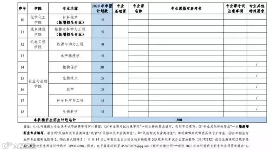 仲恺农业工程学院2020年本科插班生拟招生18个专业,共300人。具体专业和计划如下: