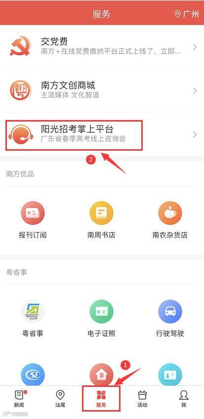 2. 点击【阳光招考掌上平台】