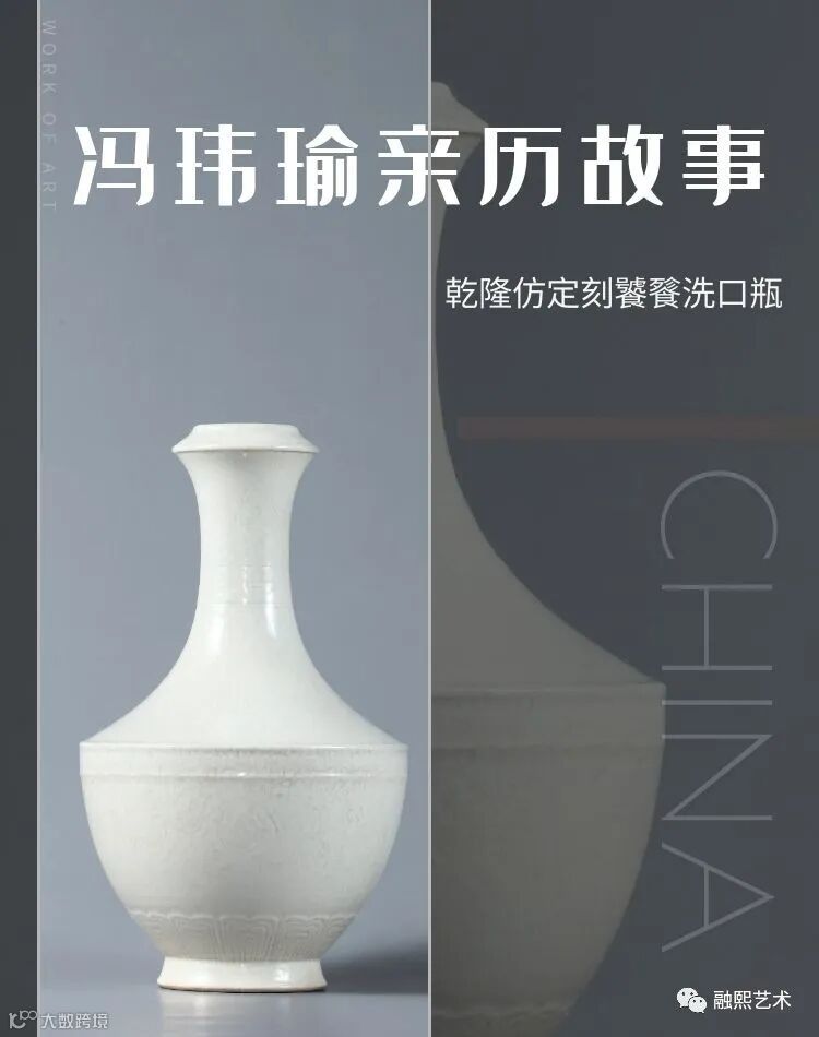 2018年8月26日,香港著名收藏家、望星楼主人张显星先生来到广东省博物馆观看我的“五色祥云——自得堂藏宋元明清单色釉瓷器特展”,对这件陈展在独立展柜的仿定白釉瓶端详良久,赞不绝口。我谈起了陈连勇先生竞得的那一件,星哥马上就说:“陈连勇那件是400多万成交的,你的这件收得真好!。这种乾隆仿定白釉饕餮纹瓶不多见的。”他真厉害!对几年前拍场的一件器物是谁竞得、什么价格成交清楚得如数家珍。除此以外,星哥的藏品更是了不起。早在2004年出版的《清代康雍乾官窑瓷器〈望星楼藏瓷〉》里面的名瓷琳琅满目,那仅是星哥藏品的一部分,前些年他在香港保利又举办了一次藏品展览,再次展出了他的另一部分收藏,让观众再次见识到望星楼不凡的收藏。