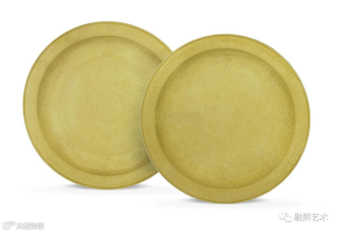犹记得在2016年11月的香港邦瀚斯秋拍上,那一季秋拍的“显赫欧洲私人珍藏御用瓷器”里有一组黄釉瓷器非常吸引人。其中有一对口径为40.6厘米的雍正刻五福捧寿盘,尺寸之大,非常罕见。但是,一件边沿有长达15 厘米多的缺失,另一件边沿也有大的缺失及其他瑕疵,后均经过补胎修复。