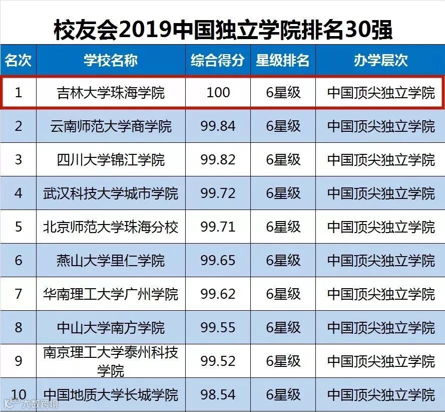 ▲ 我校位列校友会2019中国独立学院排行榜首位