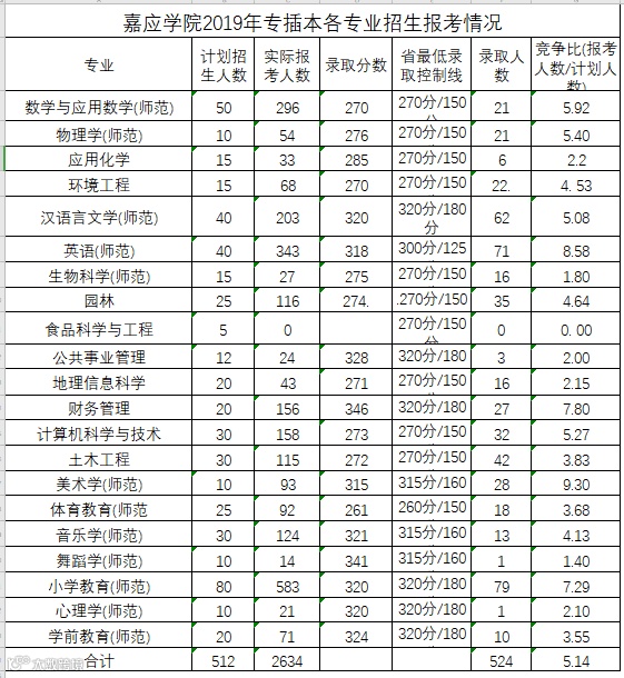 2019年各专业报考人数、录取分数、录取人数: