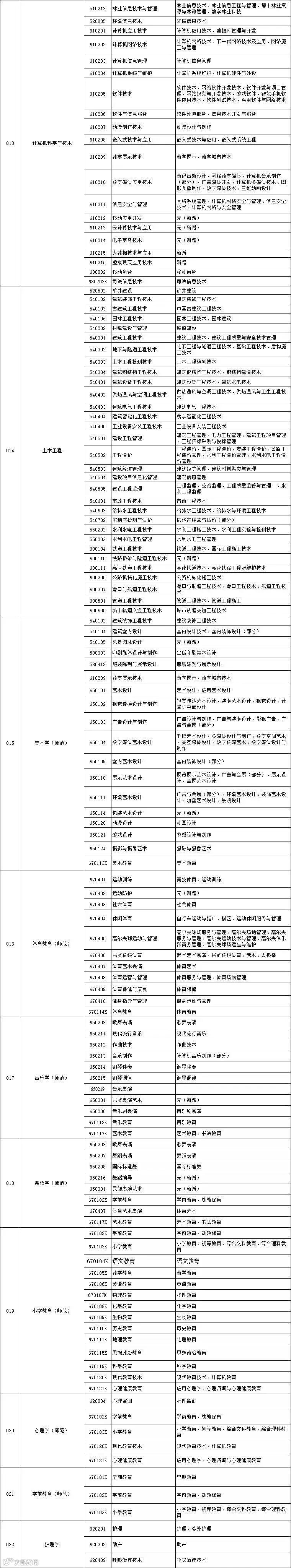 专业报考要求对照表