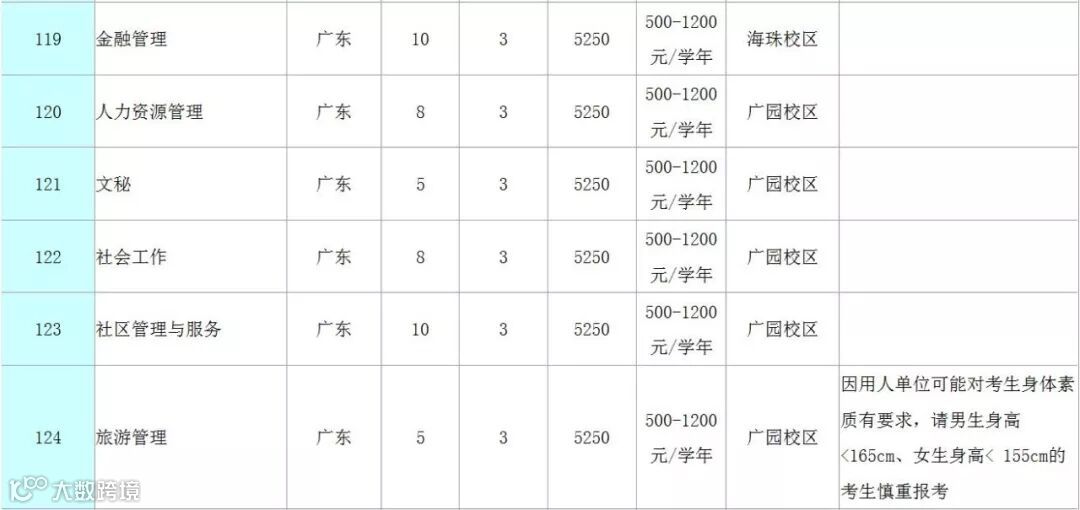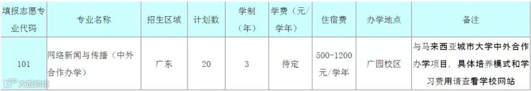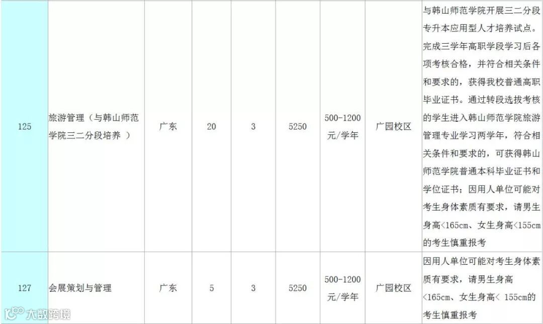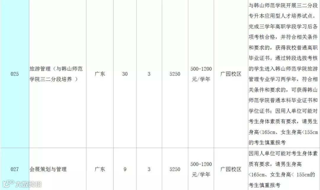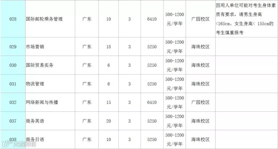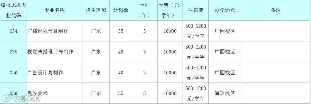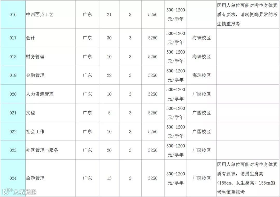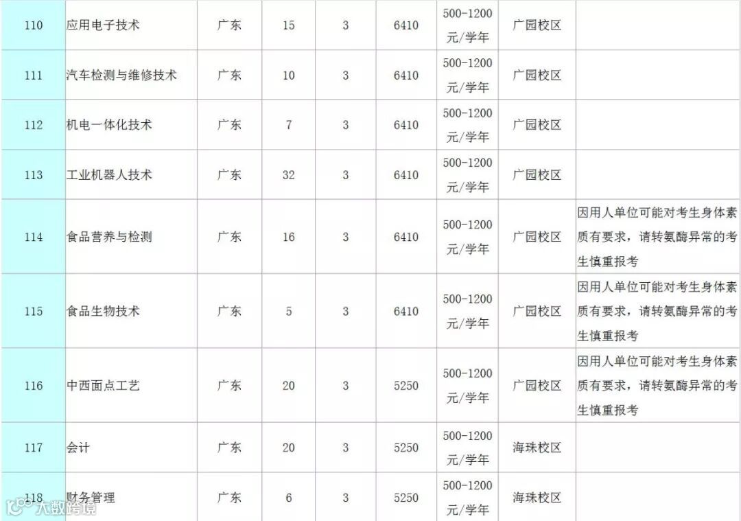 以下各招生专业、招生区域、学费、报考代码(填报志愿代码)、计划数等信息仅供参考,最终以广东省教育考试院公布的《广东省2019年普通高等学校招生专业目录》为准。
