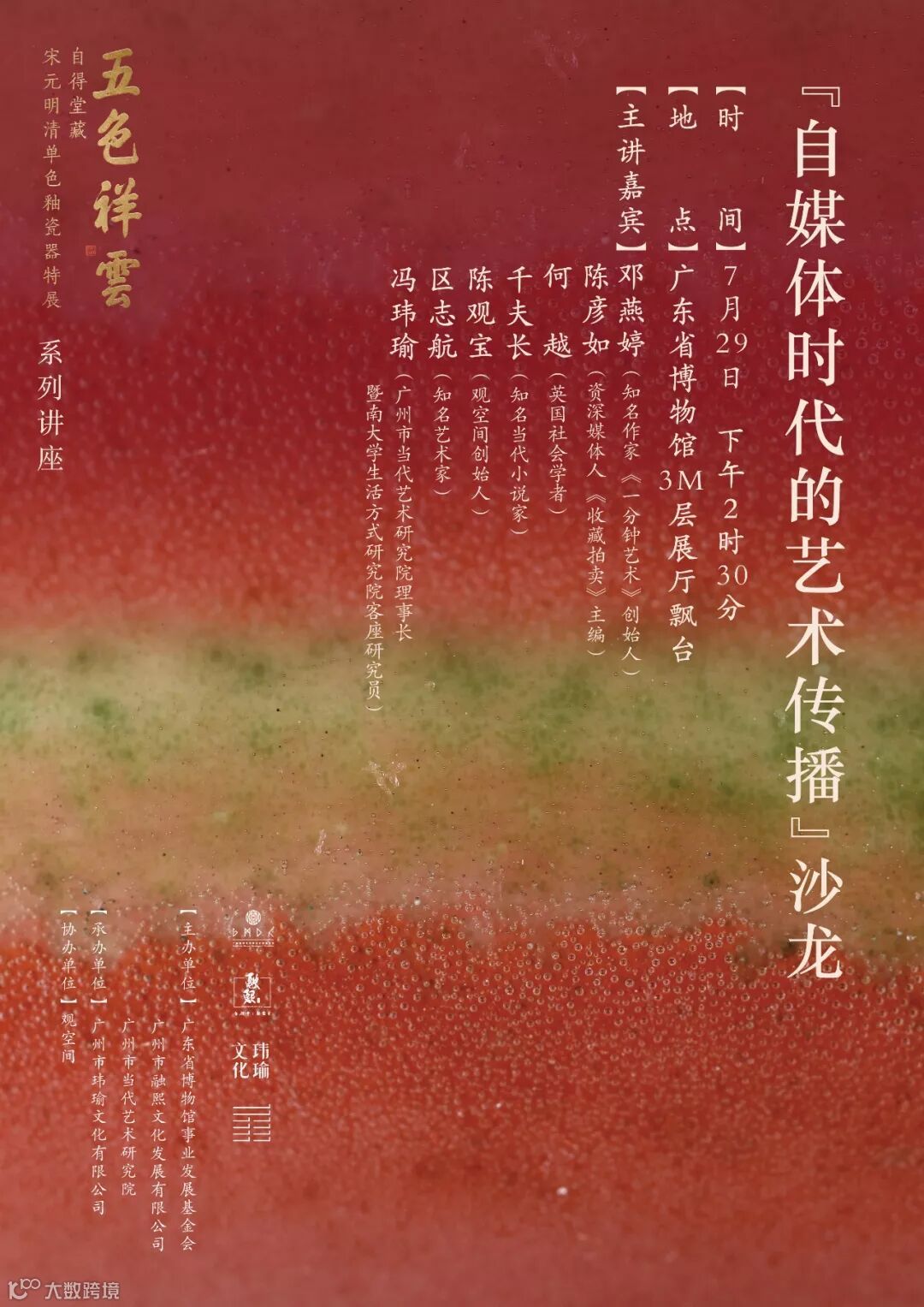 7月29日,广东省博物馆3M层“五色祥云”展厅,我们将举办一场别开生面的文化沙龙,与你畅谈自媒体时代的艺术传播。