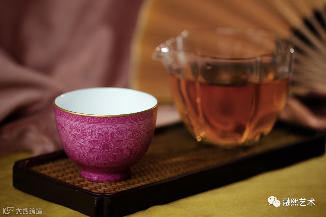 胭脂红釉锦上添花杯