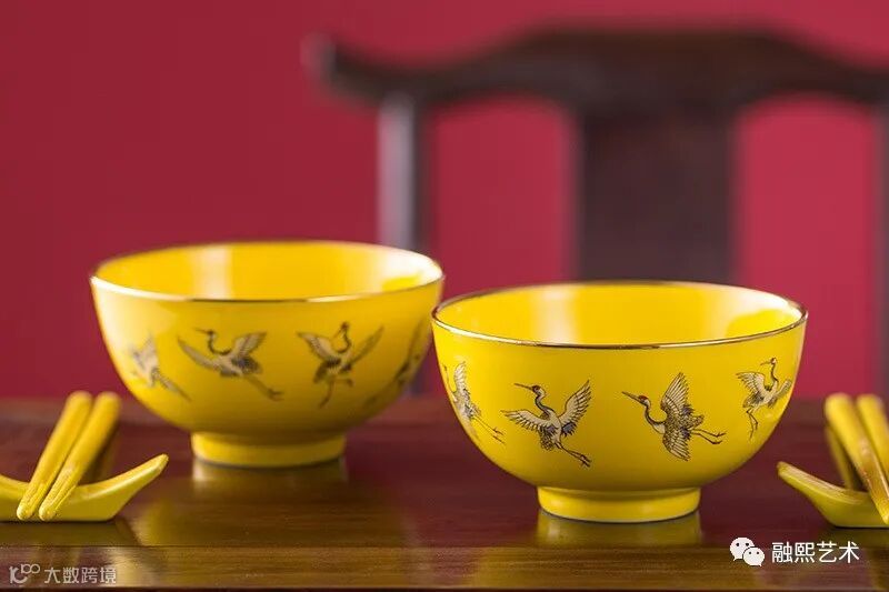 黄釉斗彩仙鹤金饭碗