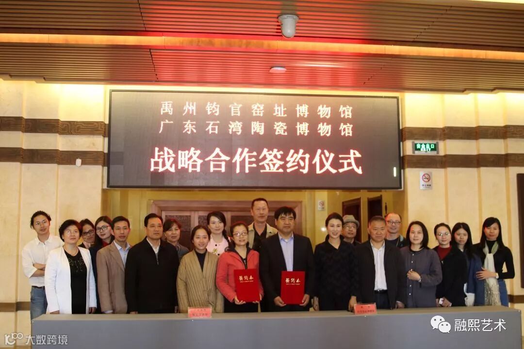 当天,在禹州钧官窑址博物馆馆长张金伟、广东石湾陶瓷博物馆馆长助理兼宣教服务部主任陈雪兰、融熙文化创始人,著名收藏家冯玮瑜、河南大学中国陶瓷研究所所长王洪伟以及融熙中原陶瓷学游全体学员的见证下,双方签订战略合作框架协议。
