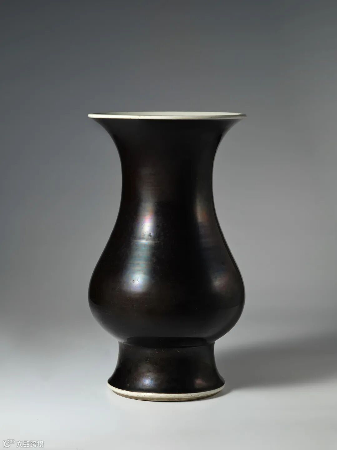康熙常见的黑地素三彩凤尾瓶之类的黑釉地色与这只琵琶尊的乌金釉不可同日而语,乌金釉釉面泛着油光,特别的滋润,有莹亮的光泽。