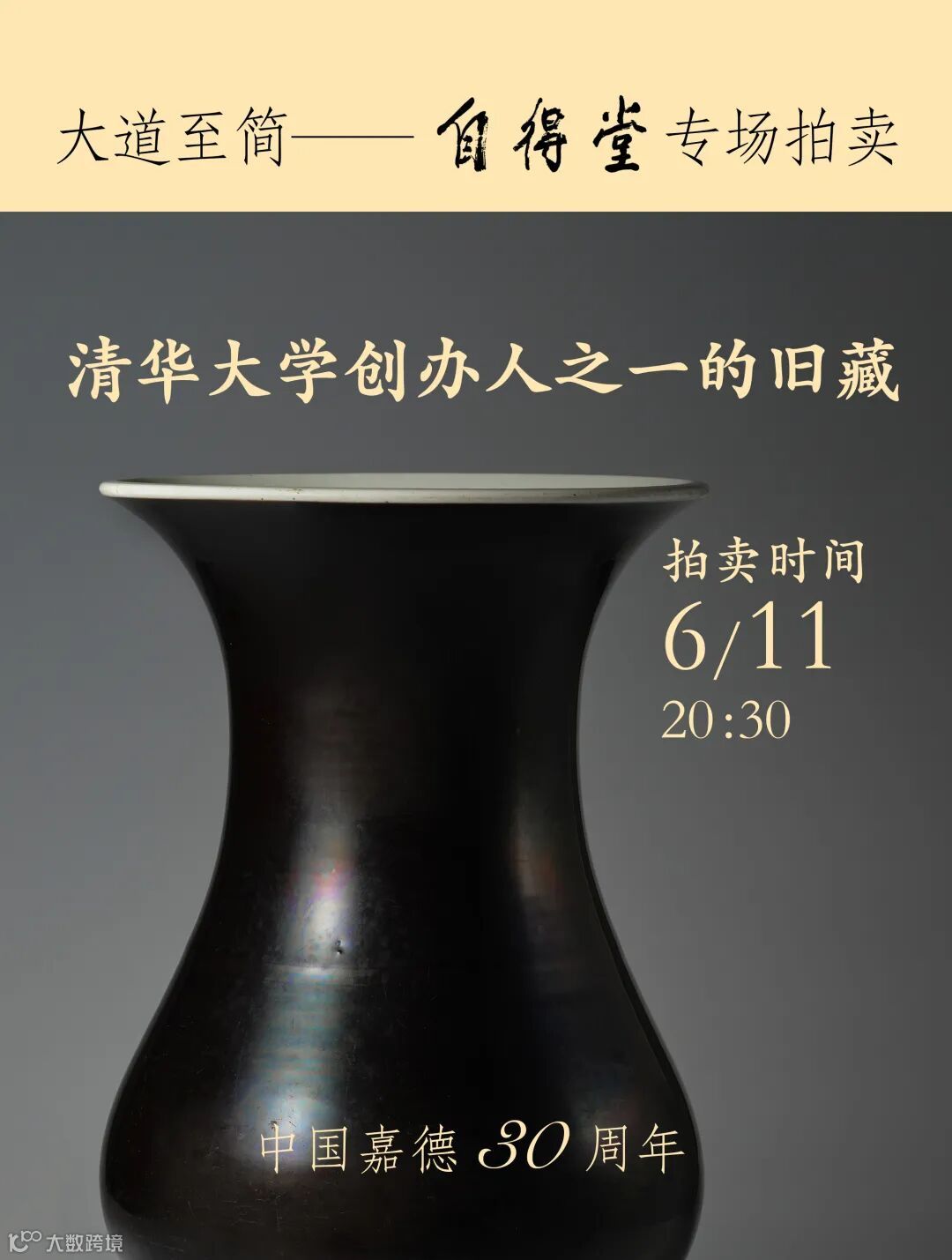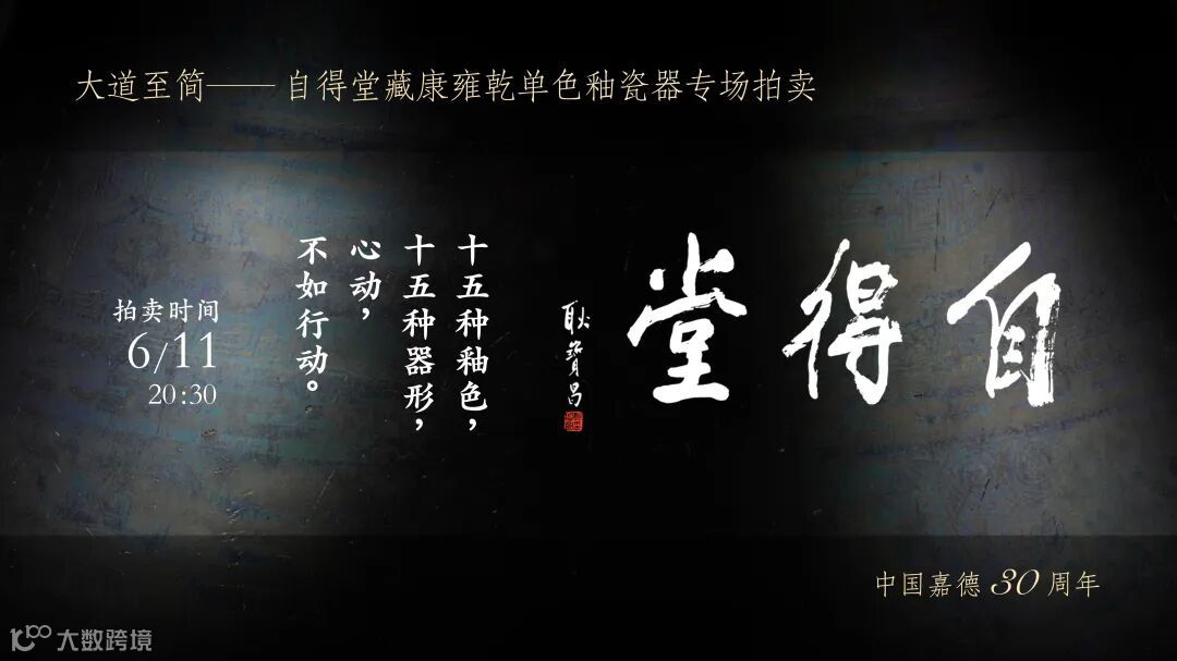 6月11日晚上20:30,自得堂主人冯玮瑜在中国嘉德30周年首次推出《大道至简——自得堂藏康雍乾单色釉瓷器》专场