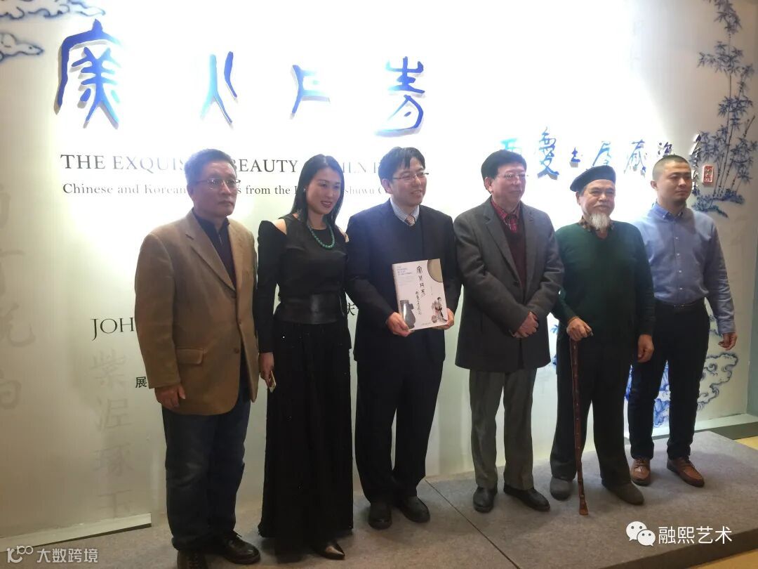 金立言博士(左3)与冯玮瑜(左2)在“窑火丹青——两庆书屋藏瓷”开幕式上合影