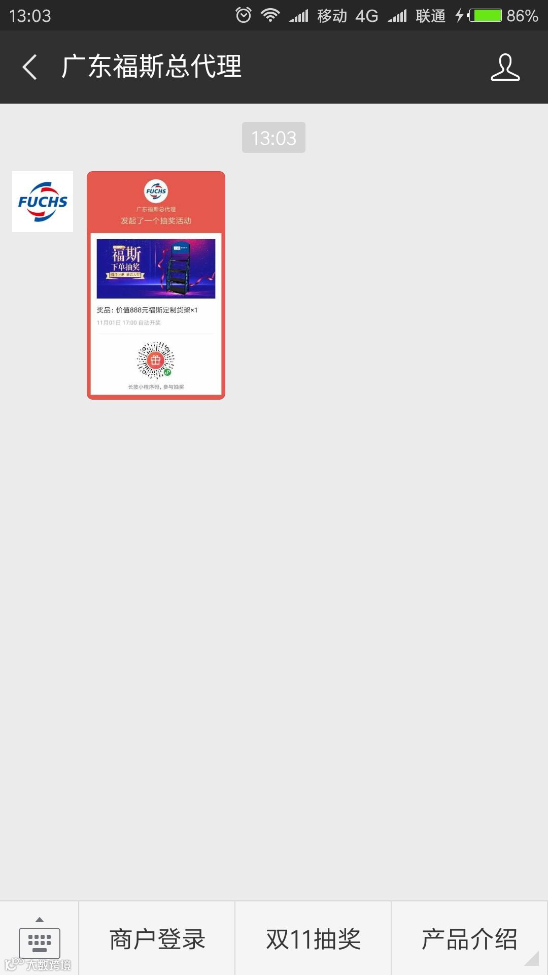 2.点击菜单栏【双11抽奖】,系统弹出图片,点开图片并识别抽奖小程序码,进入抽奖页面