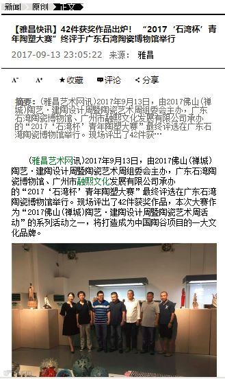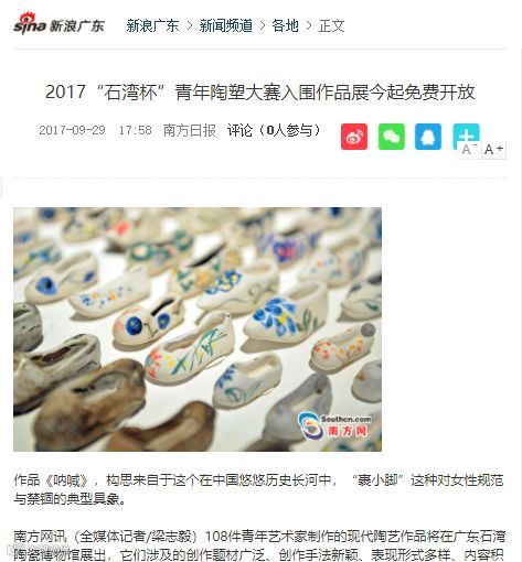 除此之外,你的作品还有可能见报于各大媒体。在2017年“石湾杯”期间,腾讯网、新浪网、雅昌艺术网、佛山电视台、《南方日报》、《羊城晚报》、《佛山日报》等多家媒体对大赛进行了跟踪报道,《南方日报》以《青春与设计,点燃陶谷新梦》为题刊登了一个整版报道;佛山电视台630新闻也连续三次对大赛、展览及获奖作品进行了多角度的深入报道。
