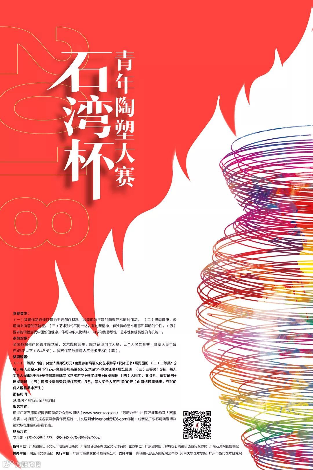 (作品寄送截止日期:2018 年 8 月31日以邮戳日期为准。参赛作品寄至:广东省佛山市禅城区石湾镇高庙路 5 号广东石湾陶瓷博物馆,并注明:2018“石湾杯”青年陶塑大赛,收件人:梁小姐,0757—82260798,13827757950)