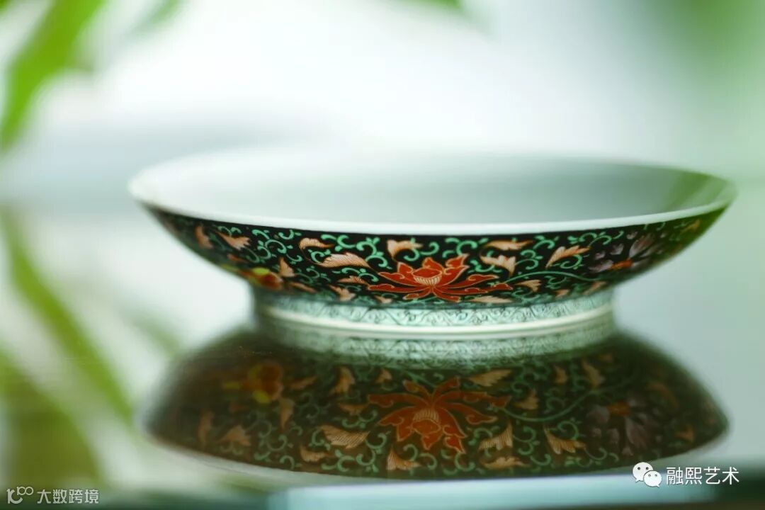 △ 清雍正黑地洋彩缠枝花卉纹盘“我的收藏有岭南情怀”